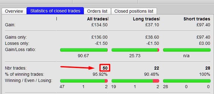 A word of caution though – it slips up on same bar entry/exits – it won’t count a trade if it opens and closes on the same bar, or if a trade netts off to no position in the same bar – an example picture is attached. This same bar close count problem might be overcome with an additional condition?