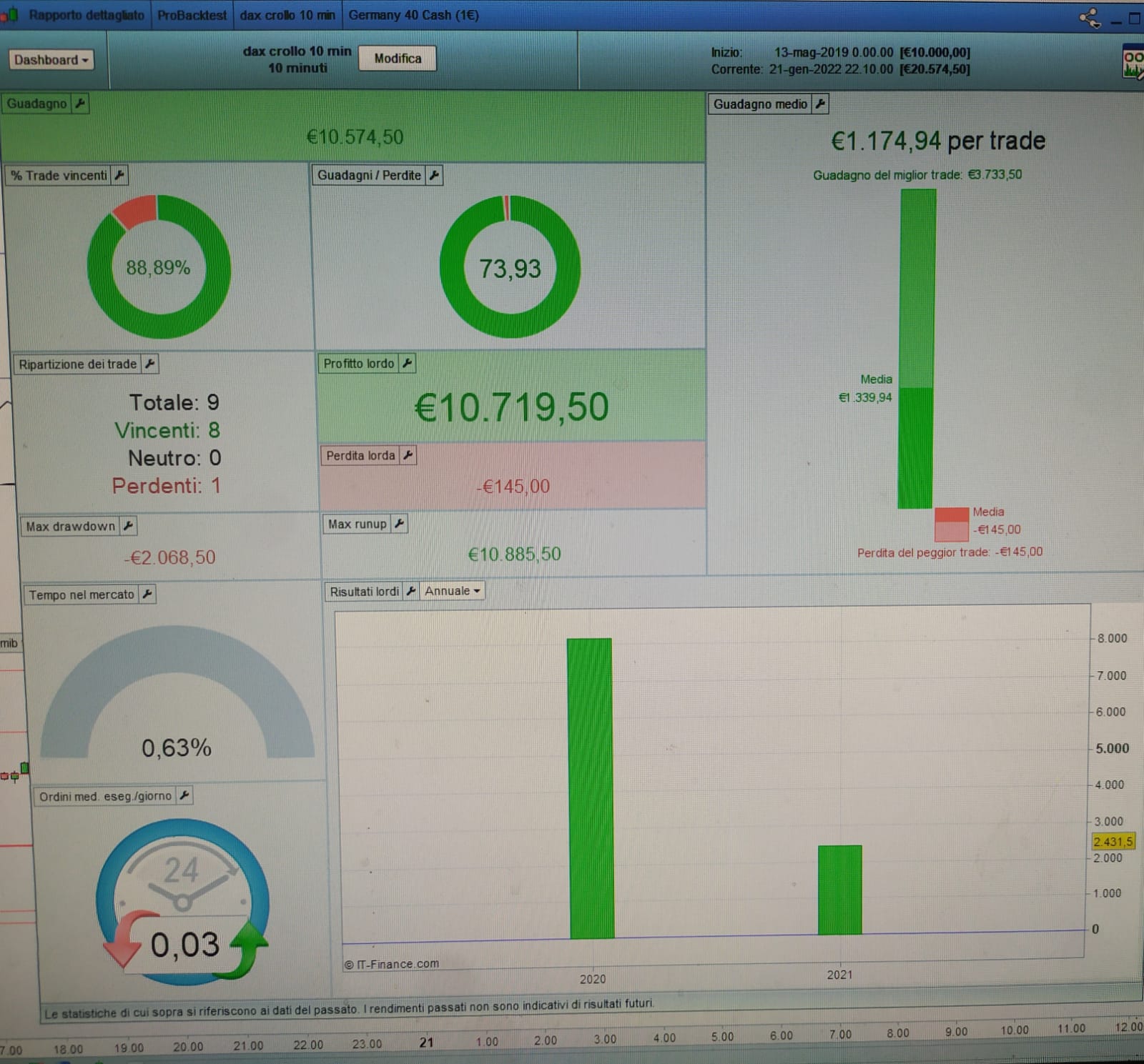 si tratta delle 14e22 di oggi 22/01 sul cfd di ig denominato Germany cash 1 euro, la differenza è assurda, praticamente la metà della perdita percentuale reale, per esempio o controllato lo spot gold che invece è corretto. a questo punto non posso più fare affidamento sui dati di prorealtime mi sembra di capire, avevo una strategia che si basa sulla perdita percentuale ed ovviamente non è partita,, ad altri è mai capitato?