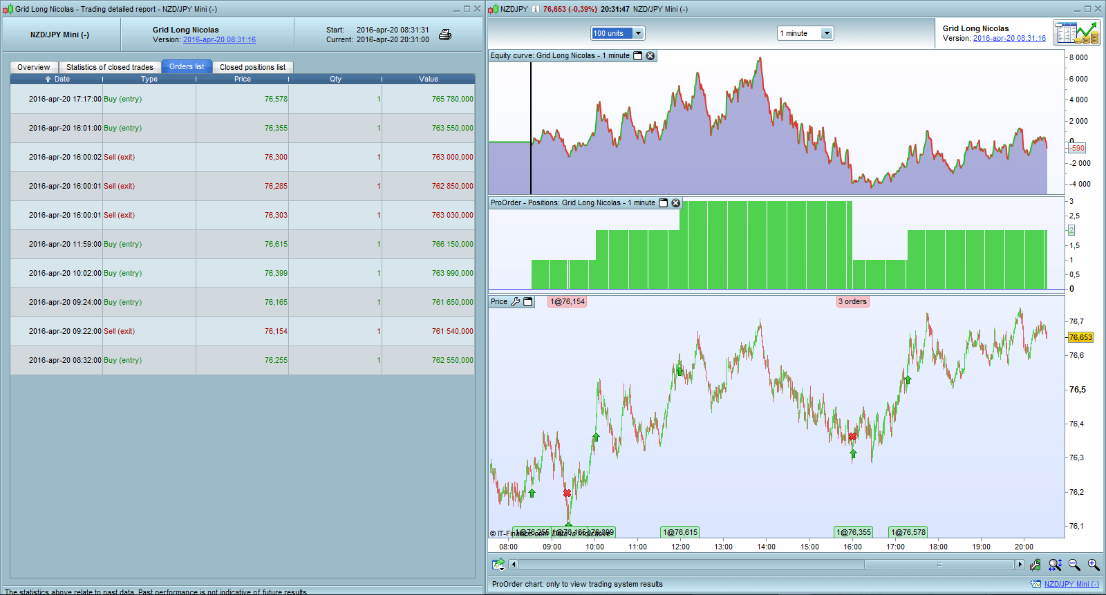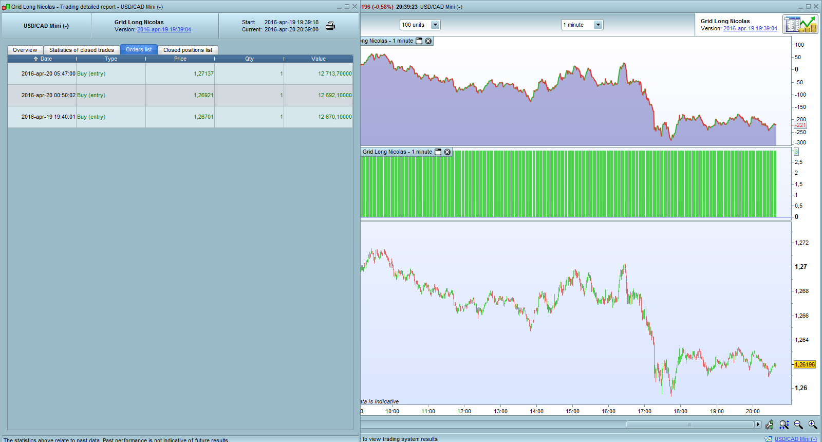 The strategy is based on scaling into positions while maintaining the same risk by placing stop orders in the direction of the trend and momentum of the selected instrument, for instance earlier this week I was anticipating that EUR/USD would drop and at the time the market price was 1.1385. I would start the system placing an order to sell 1 contract at market price along with several sell stop orders to sell additional contracts at predetermined intervals by 20 pips, 1.1365, 1.1345 and 1.1325 etc.