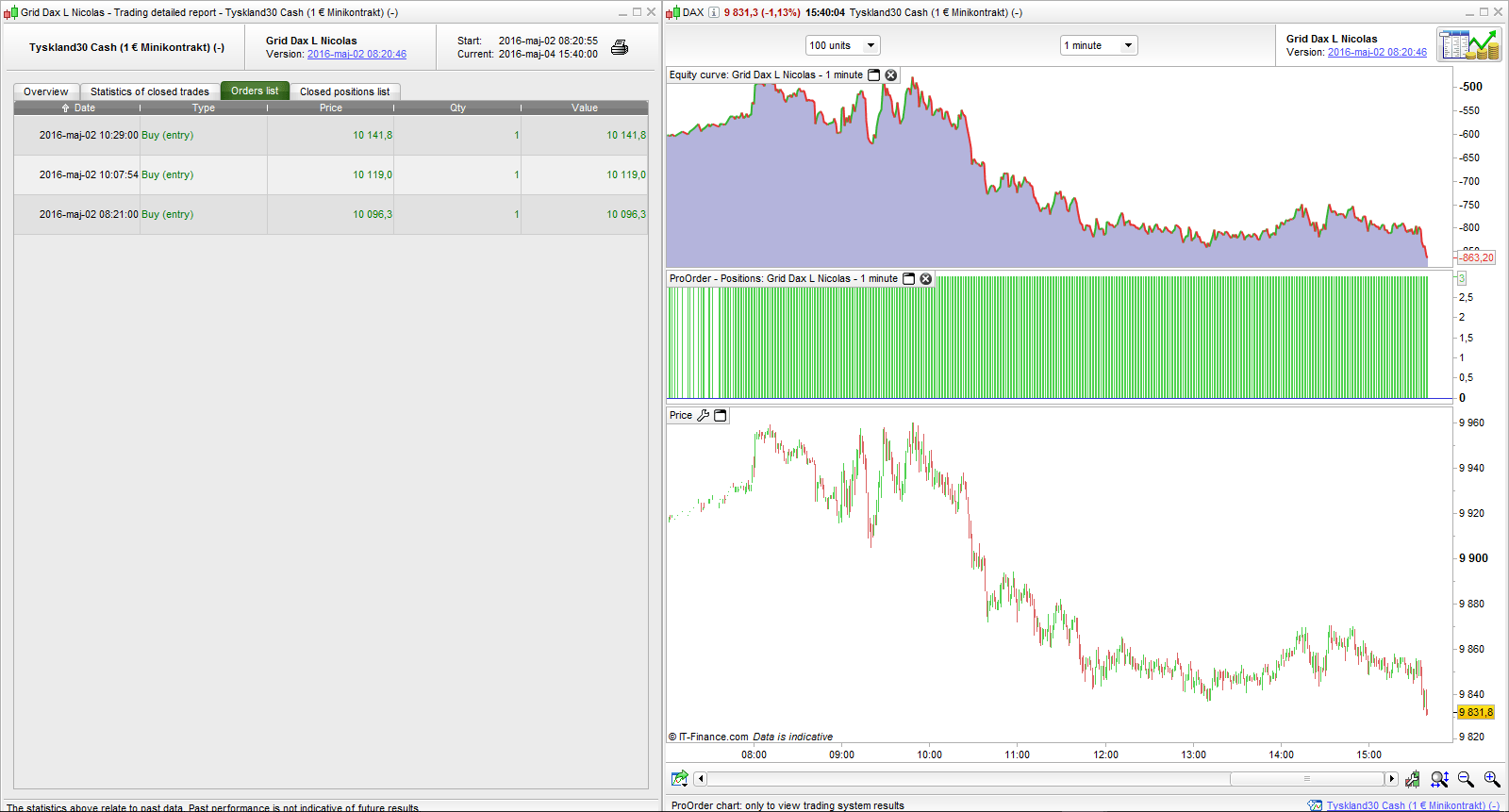 So for instance we start a system for going long on EURUSD when the market price is 1.1205, the ordes should be triggered around the following price levels;