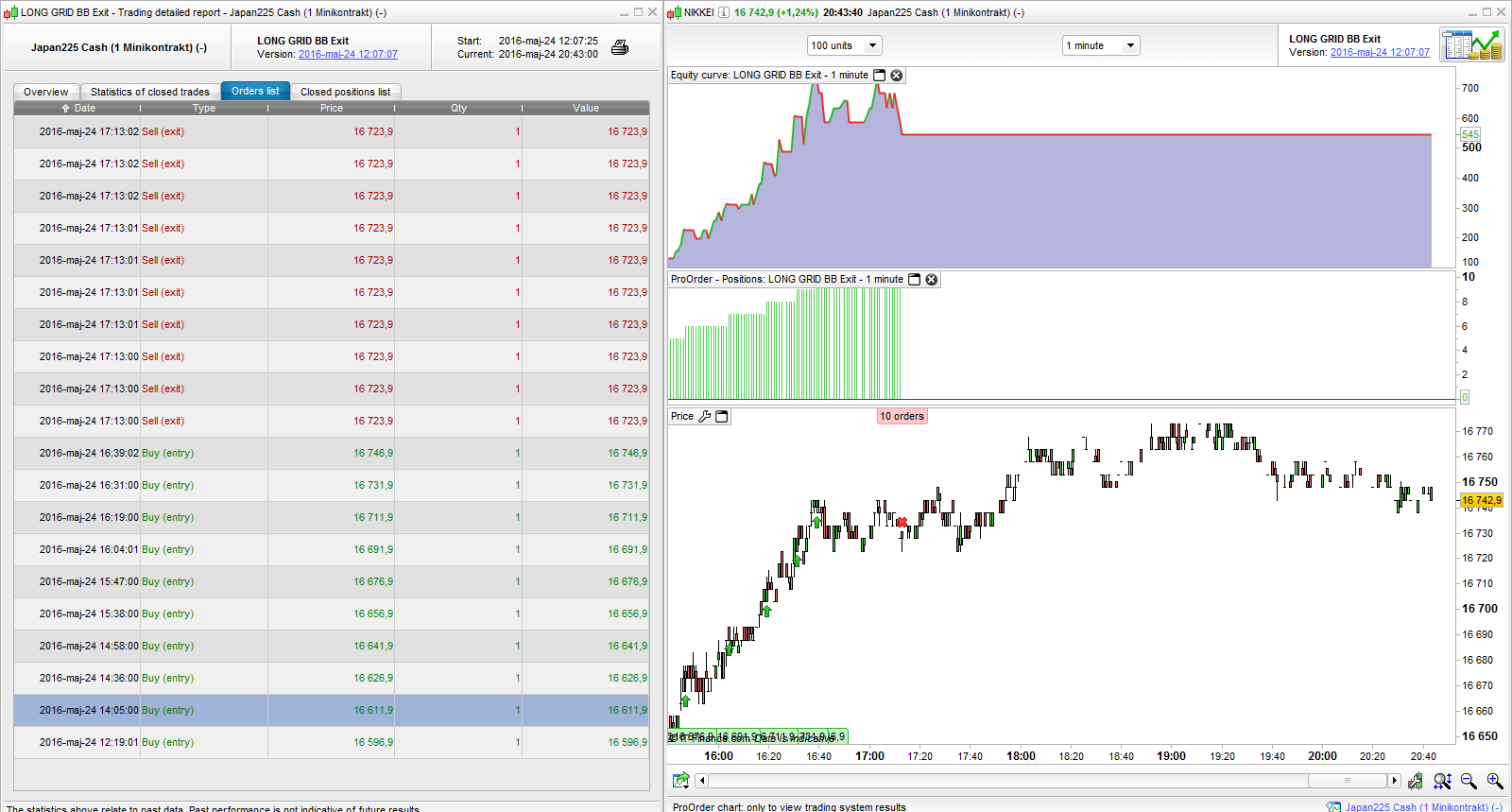 Nicolas it works! First day of real time trading everything looks good, I was short on time today and only set it up for the Nikkei with 2 % SL and 10 grid step on a 1 min, most entries were taken with a step of about 15-20 pips but of course this is due to the fast moving price. On a highly volatile index like the Nikkei it probably needs to be run on a 1 second chart.