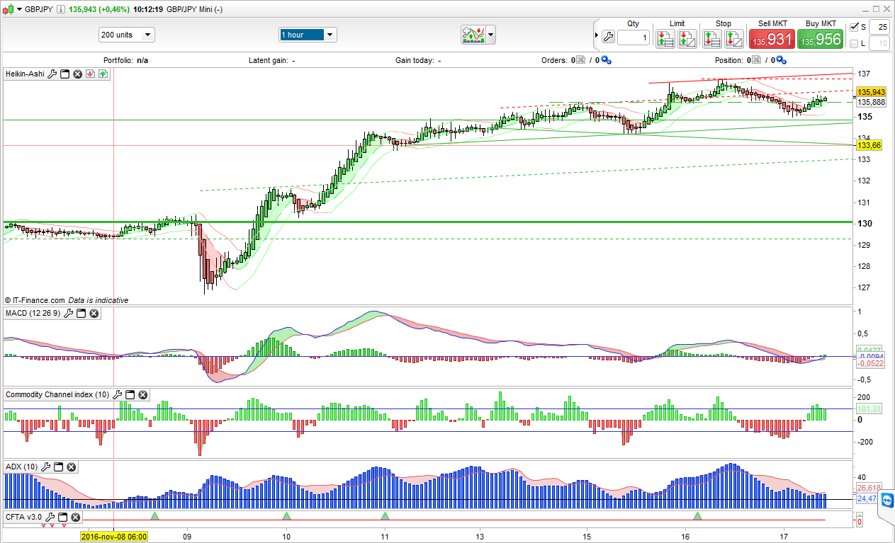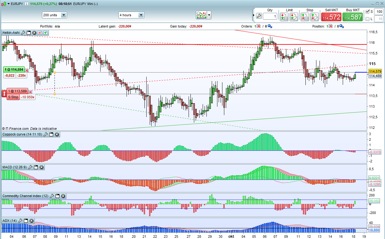 A reminder about the method for everyone, we scan H4 and H1 for setups where the Coppock Curve and MACD has started to curve in the direction we are looking to trade and for the Heiken Ashi to change color, these three are our filters which give us a setup and when the CCI crosses zero in the matching direction we have a signal. The ADX is our reference indicator, if its value is above 20 (previously I had the value set to 23 but made and adjustment) and rising it is a stronger signal, if its value is below 20 and going sideways and declining it is a weak signal and we might want to think twice about starting the system.