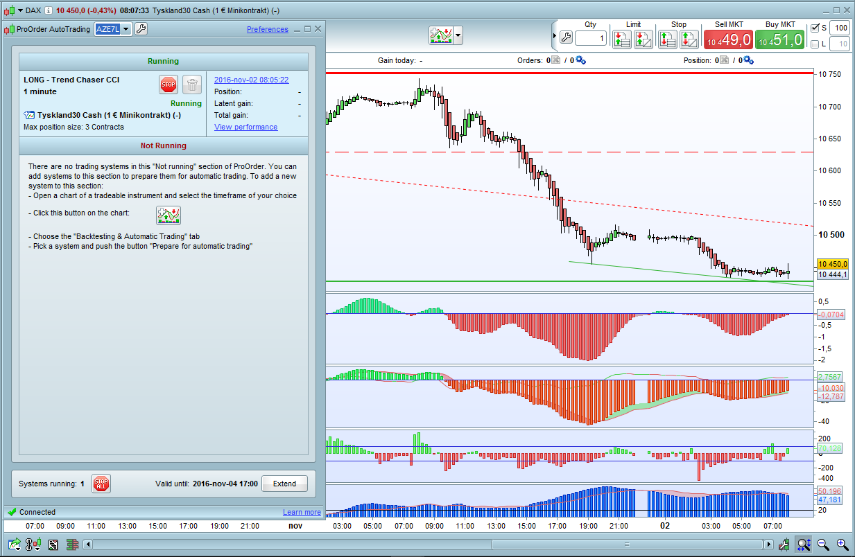 Once we receive a signal or solid setup we start the system on M1. We can also run it on lower timeframes such as 10 second but then the indicator values in they code neeed to be multiplied by 6 to match the lower timeframe.