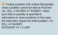 The PRT platform is able to handle partial closure but the broker IG does not allow partial closures via the platform. So you can back test partial closure ideas and code but not actually run any of it live.
