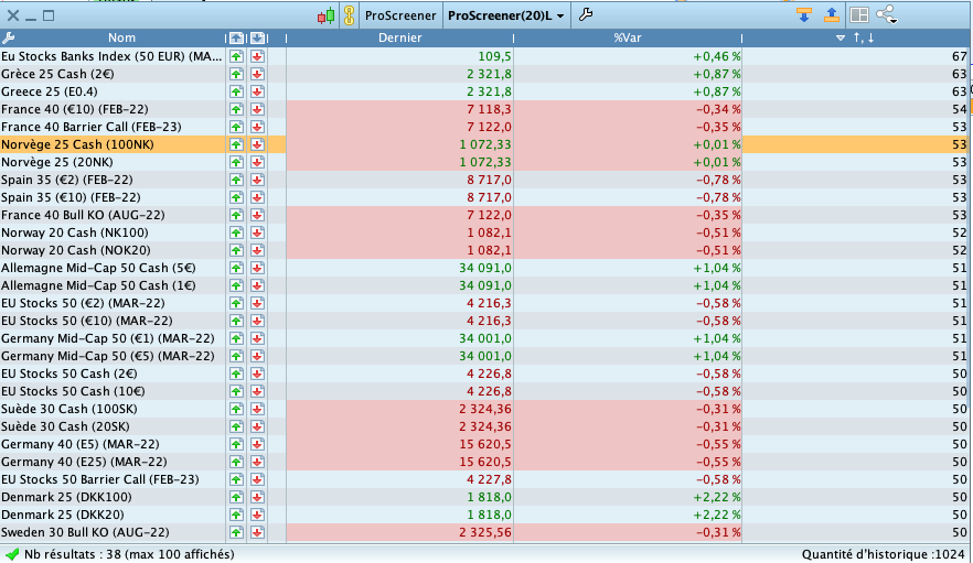 Bon, Bon… je crois que j’ai ce que tu recherches… deux screener, un pour Long et un pour Short. J’ai mis en Daily, mais tu peux changer.