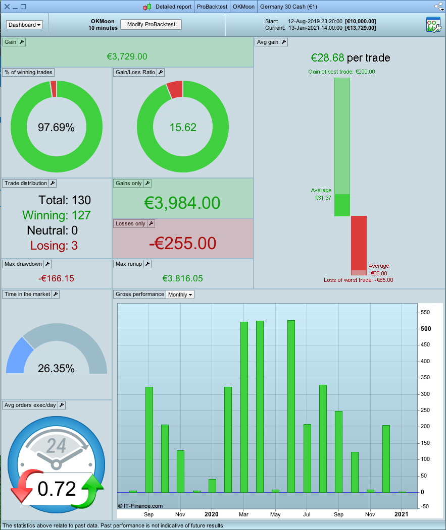 - Average gain per trade – also very low. Along with low trades on a 10min TF history its very easy to find winning trades- on a backtest.