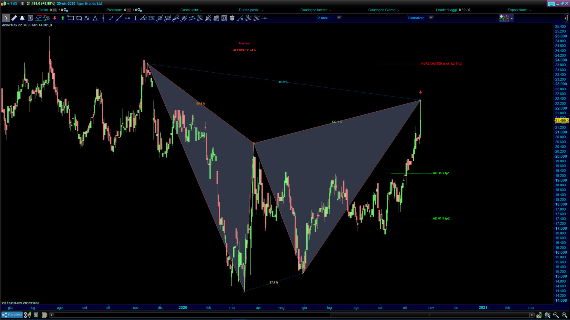 | 06:57.54 | Azioni – Sud Africa | Tiger Brands Ltd | Gartley | Bearish |