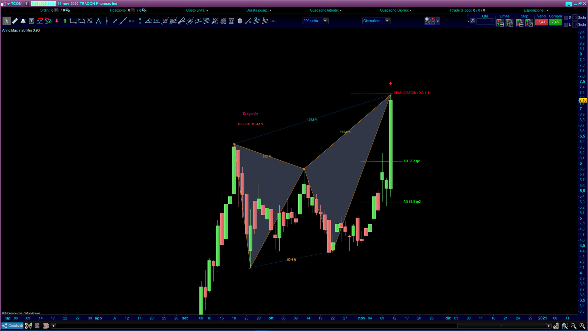 | 2020-11-12 | 06:50.00 | Azioni – US (NASDAQ) | TRACON Pharmas Inc | Butterfly | Bearish |