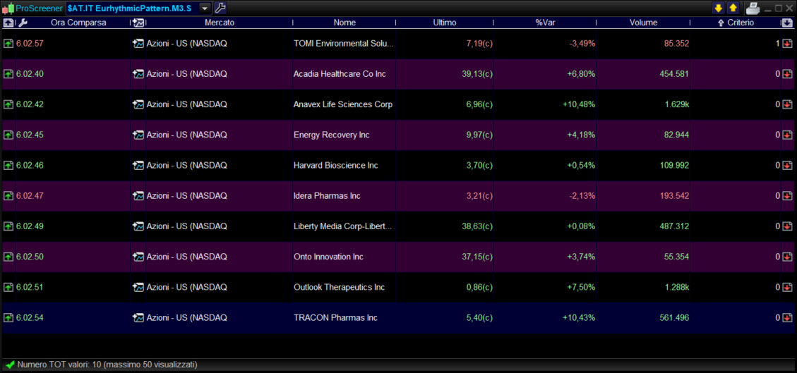 | 2020-11-07 | 06:15.07 | Azioni – US (NASDAQ) | TOMI Environmental Solu | Gartley | Bullish |