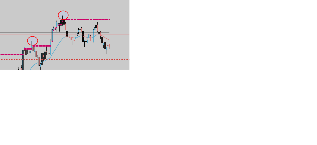 C’est juste! j’étais sur mon smartphone et je n’ai pas bien regardé l’image… en réalité les points roses auraient dut se placer sur le high de chaque bougie sur cet exemple, puisque que l’on “crevait” le plus haut du jour à chaque bougie à cet instant.. Je vais investiguer un peu plus !