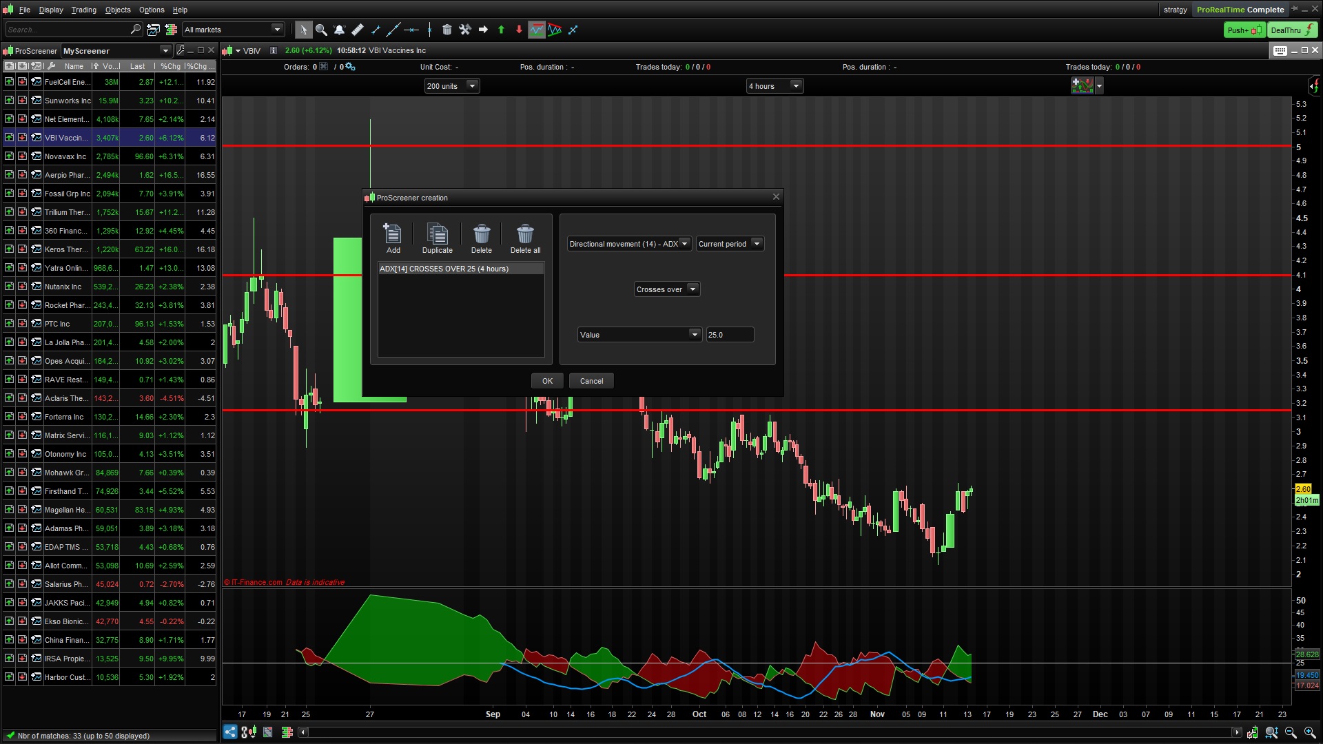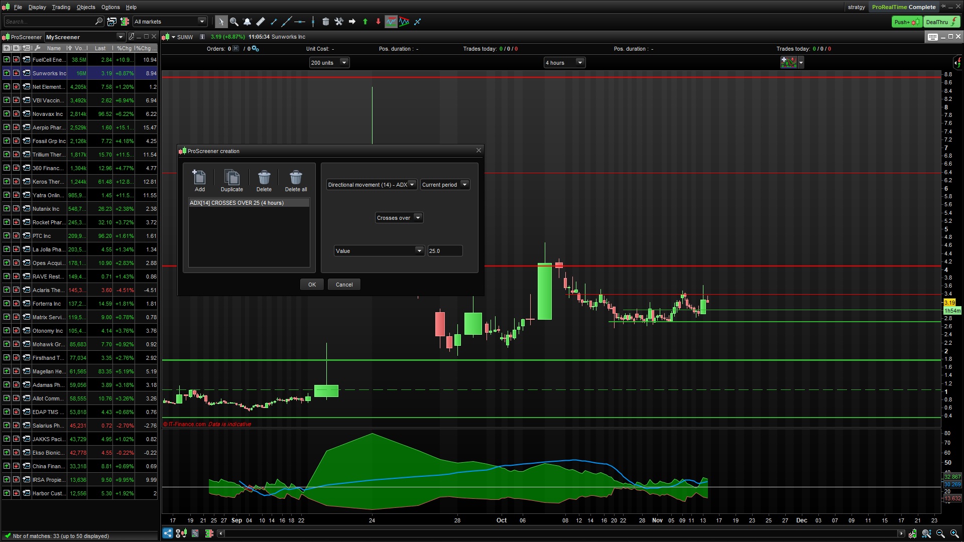 يتعلق الأمر بإظهار لي عندما يتجاوز adx القيمة 25 في الفترة الحالية