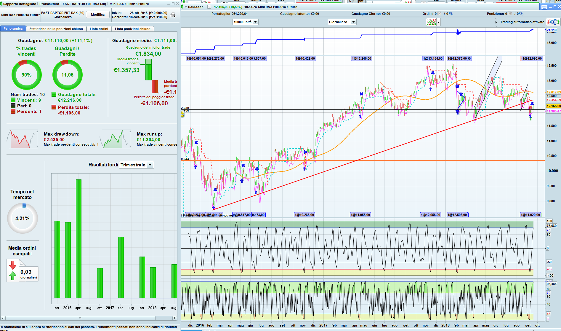 This strategy is working on Mini-Dax, is a simple combination of two indicators: 1) The Composite Momentum by Francesco Caruso and a fast RSI on daily chart.