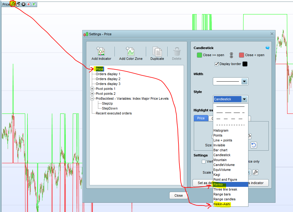 Simply click on the ratchet icon on the price chart itself and then select the price option and just select your price type.