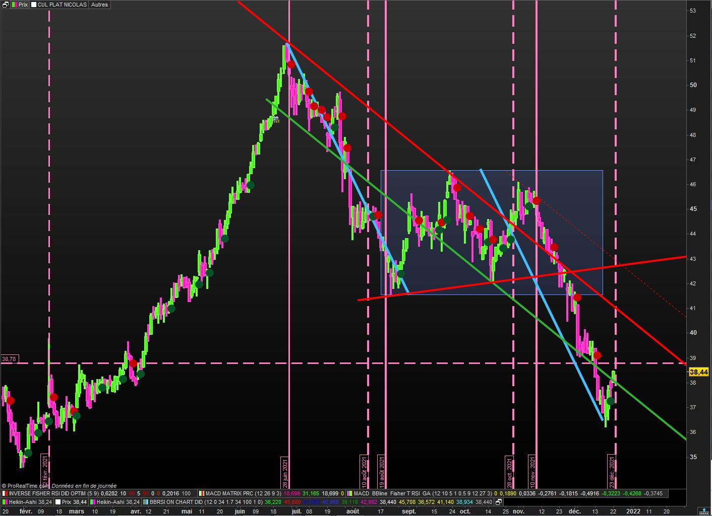 Pour alléger le graphe j’aimerai qu’il n’apparaisse que le premier cul plat après un trend de 5 chandeliers minimum.