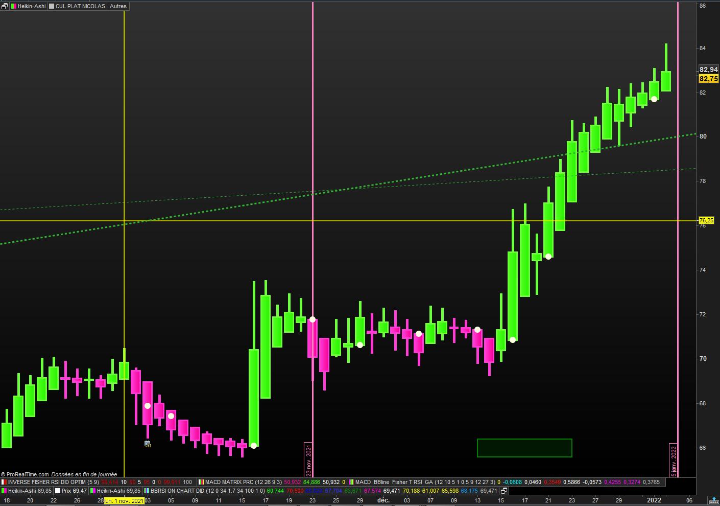 J’ai des difficultés à créer un indicateur qui me ferait ressortir le premier “cul plat” (Heikin Ashi sans mèche basse sur un trend haussier et Heikin Ashi sans mèche haute sur un trend baissier )