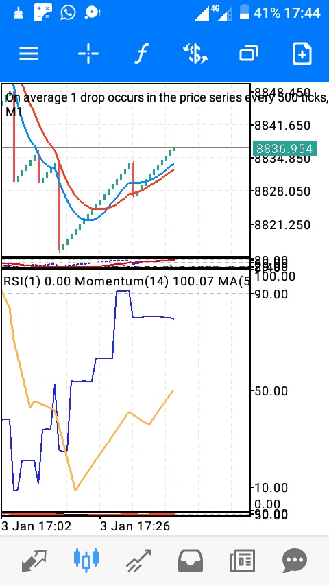 An example is shown in the attached image. The yellow line is a period 5 SMA and it can generate another signal in combination with the momentum. If both touch the RSI lines at the same time as described above, it generates a similar signal but runs for 5 bars instead.