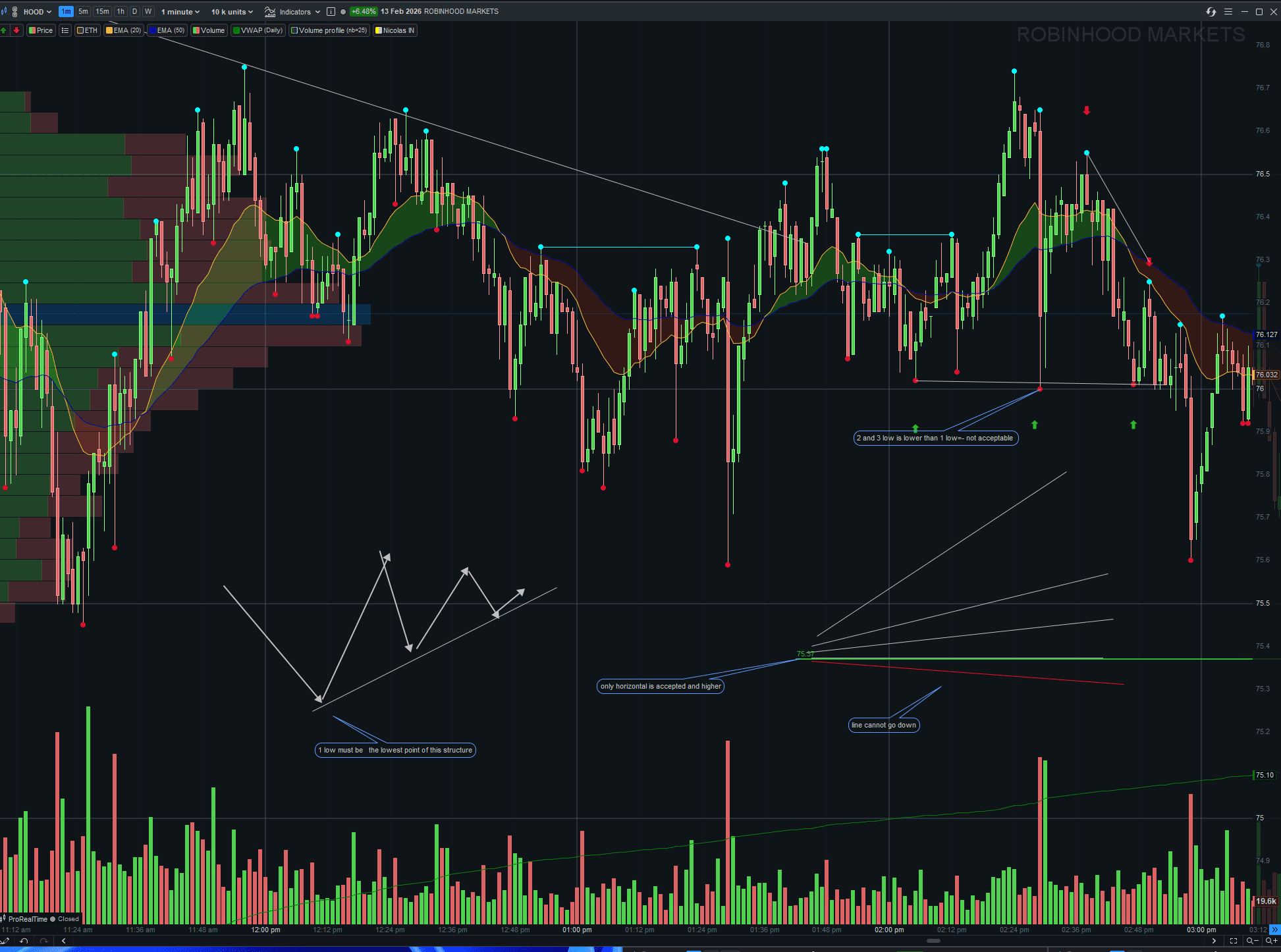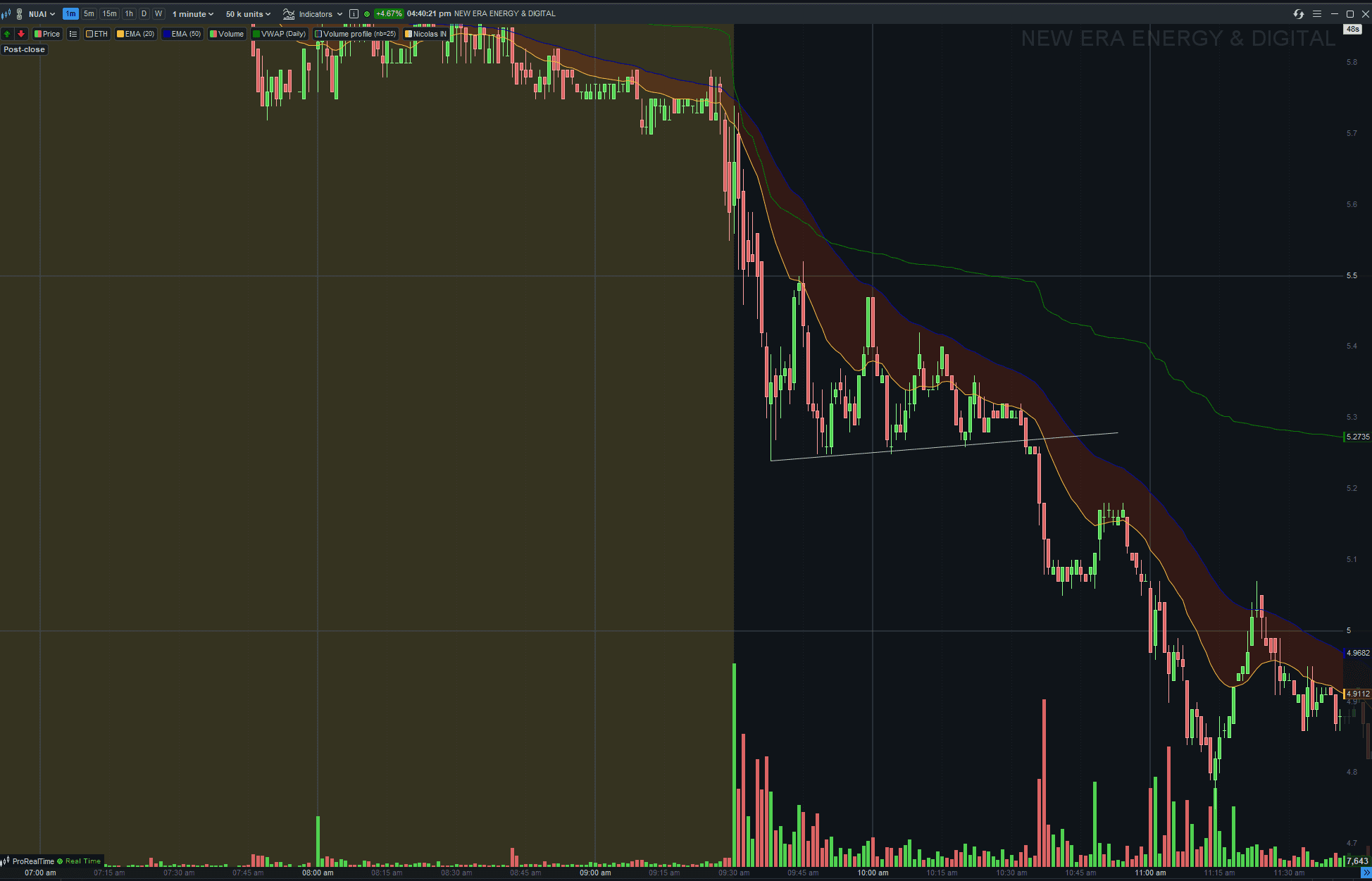 Previously, the screener was returning too many results, mostly from choppy charts. So, I added filters to exclude stocks with a small 1‑minute range, less than 1M volume, or a price under $1.
