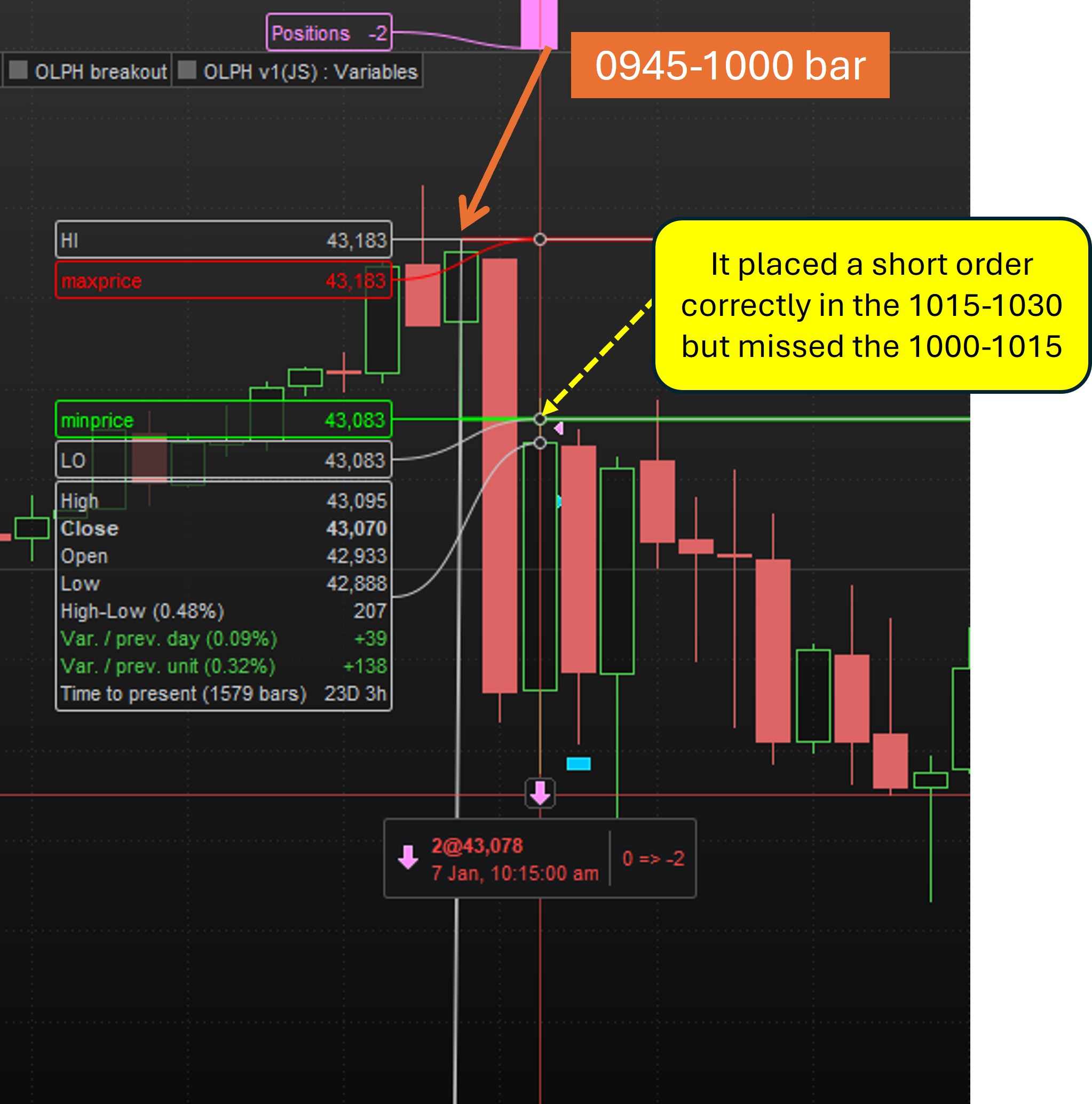 The 104500-110000 bar, note that the order is placed at the right level but its below the close of the prior bar which triggered it.
