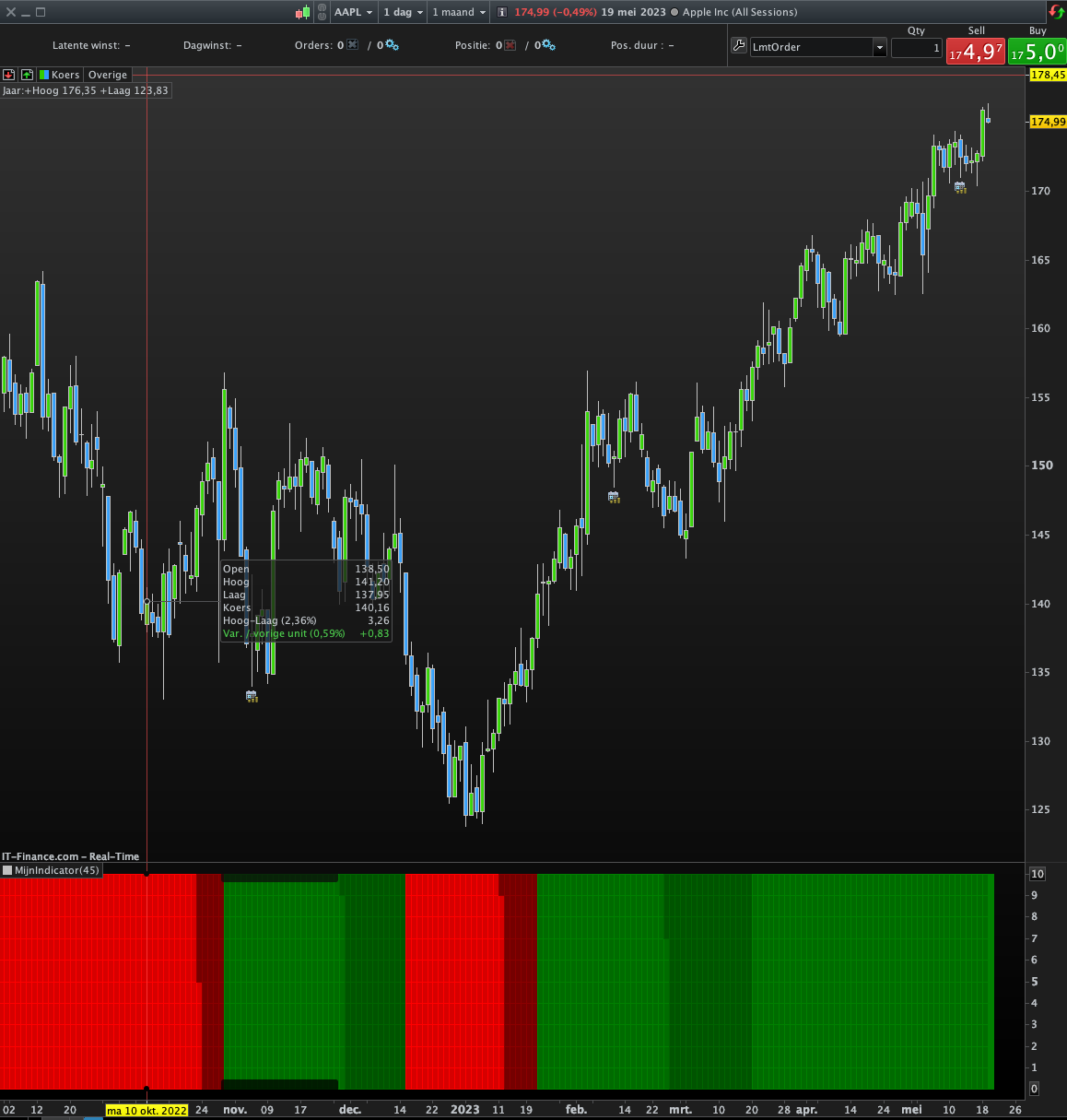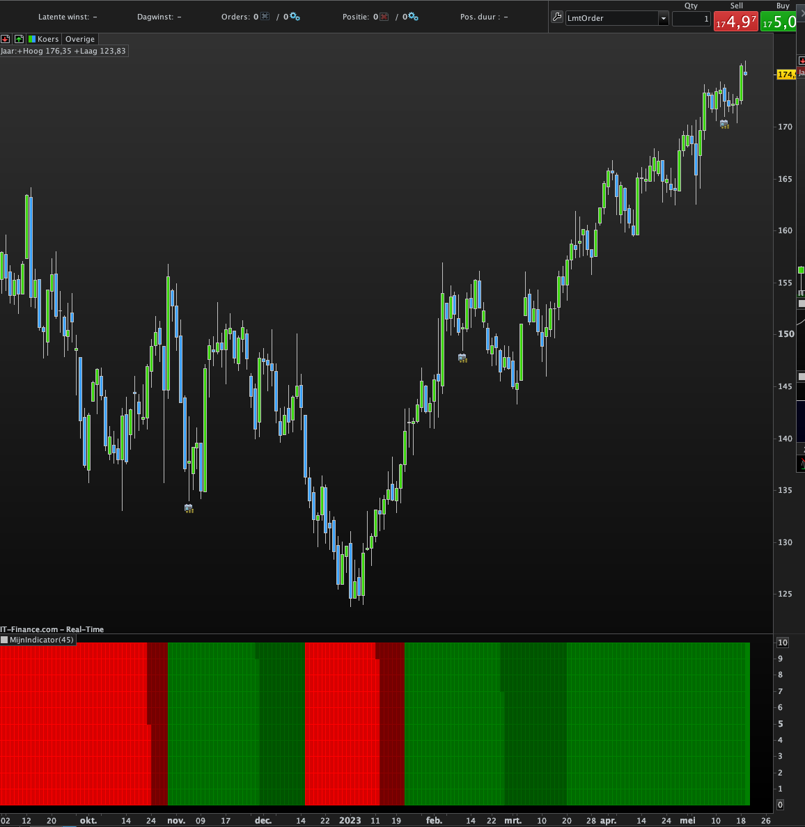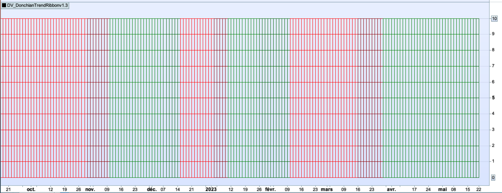 Thus, each column (Bar) in the indicator consists of 10 pieces of 5 high (total 50 high). These pieces also have a different color so that you can see a difference per column (Bar)…