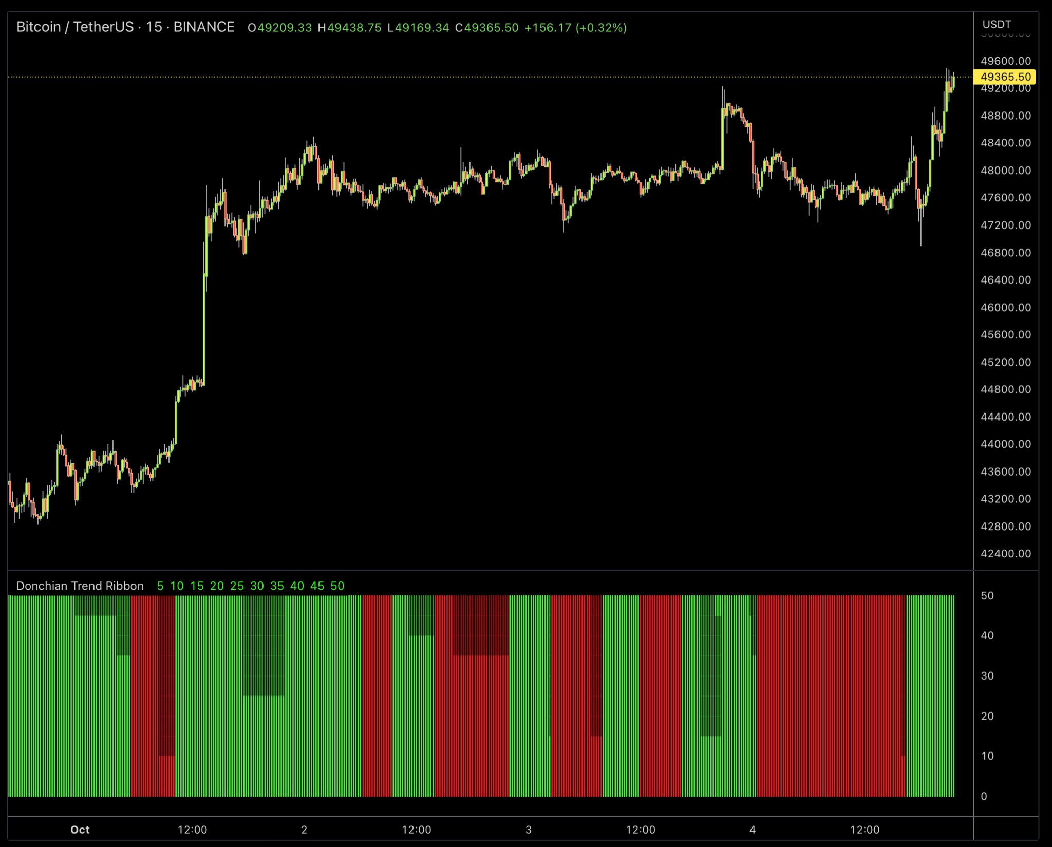 plot(50, color = dchannelalt(dlen – 9, maintrend), style = plot.style_columns, histbase=45)