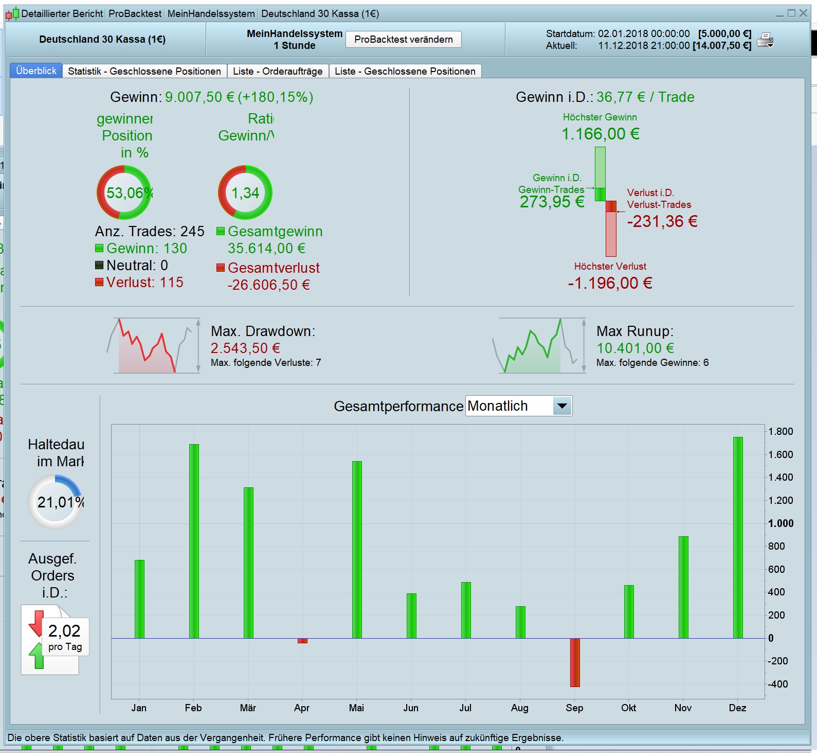 Once we have the results we can try to build a strategy. See example attached. If we enter a position at 8 o’clock and exit at 12 o’clock to reach the best results.