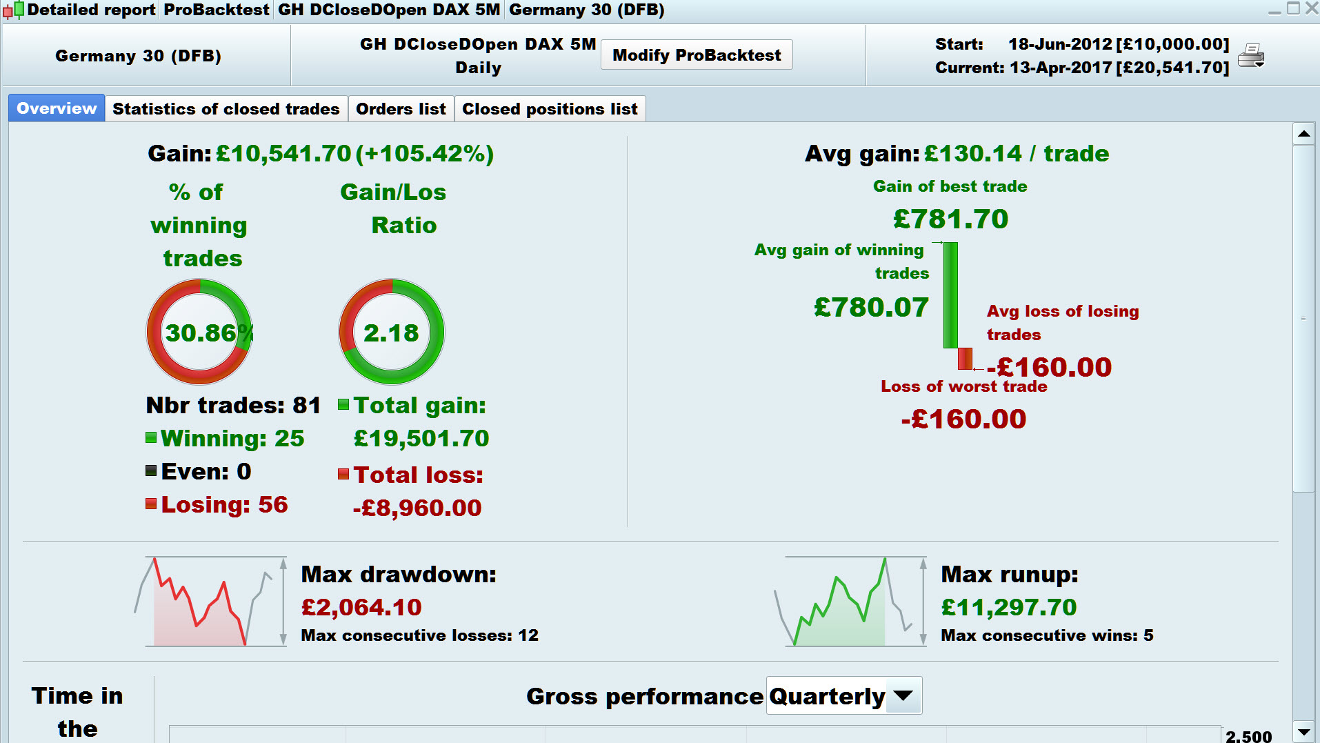 I played around with above and got attached results on DAX 100,000 bars @ 5 Min (cos I like 5 mins TF 🙂