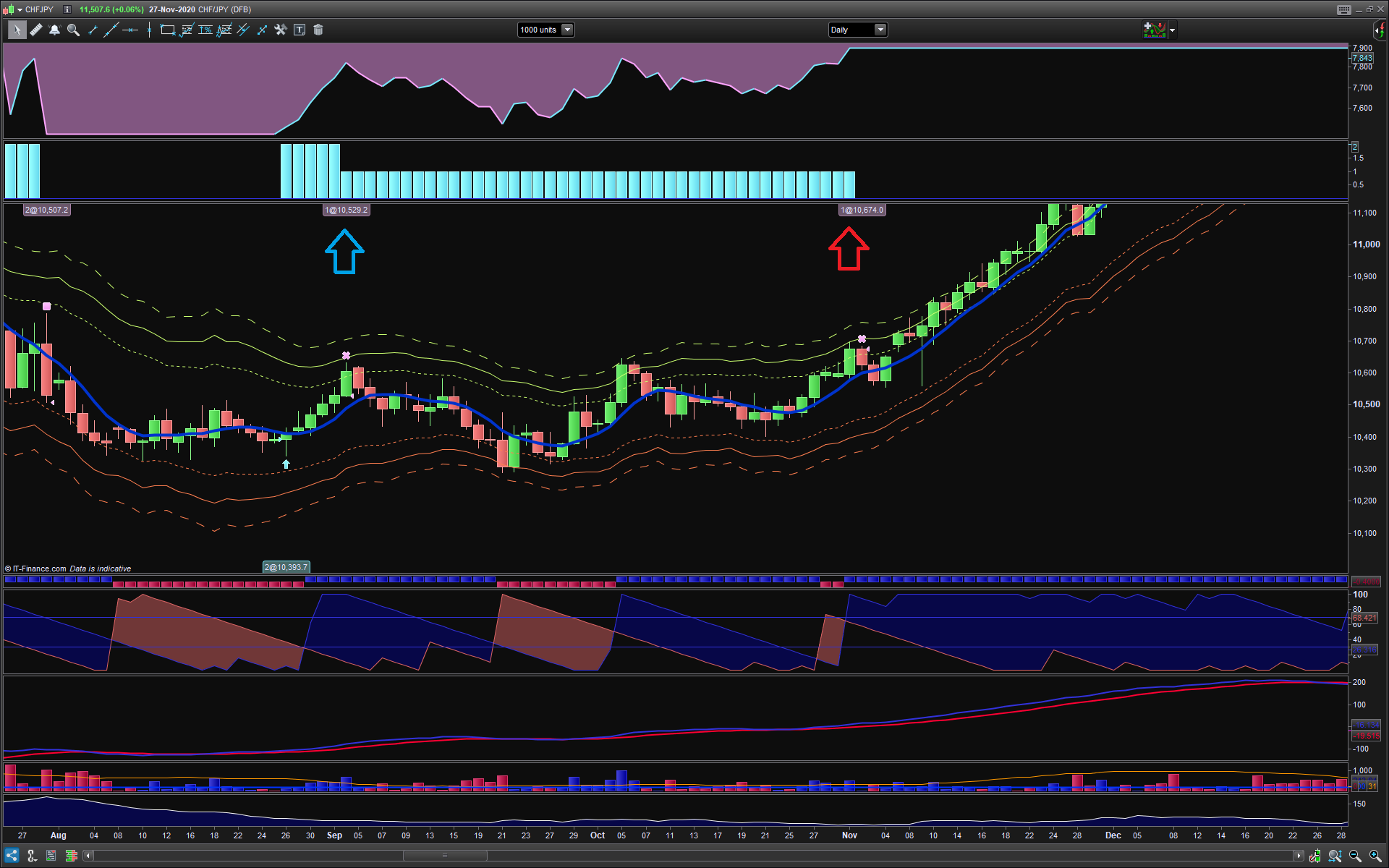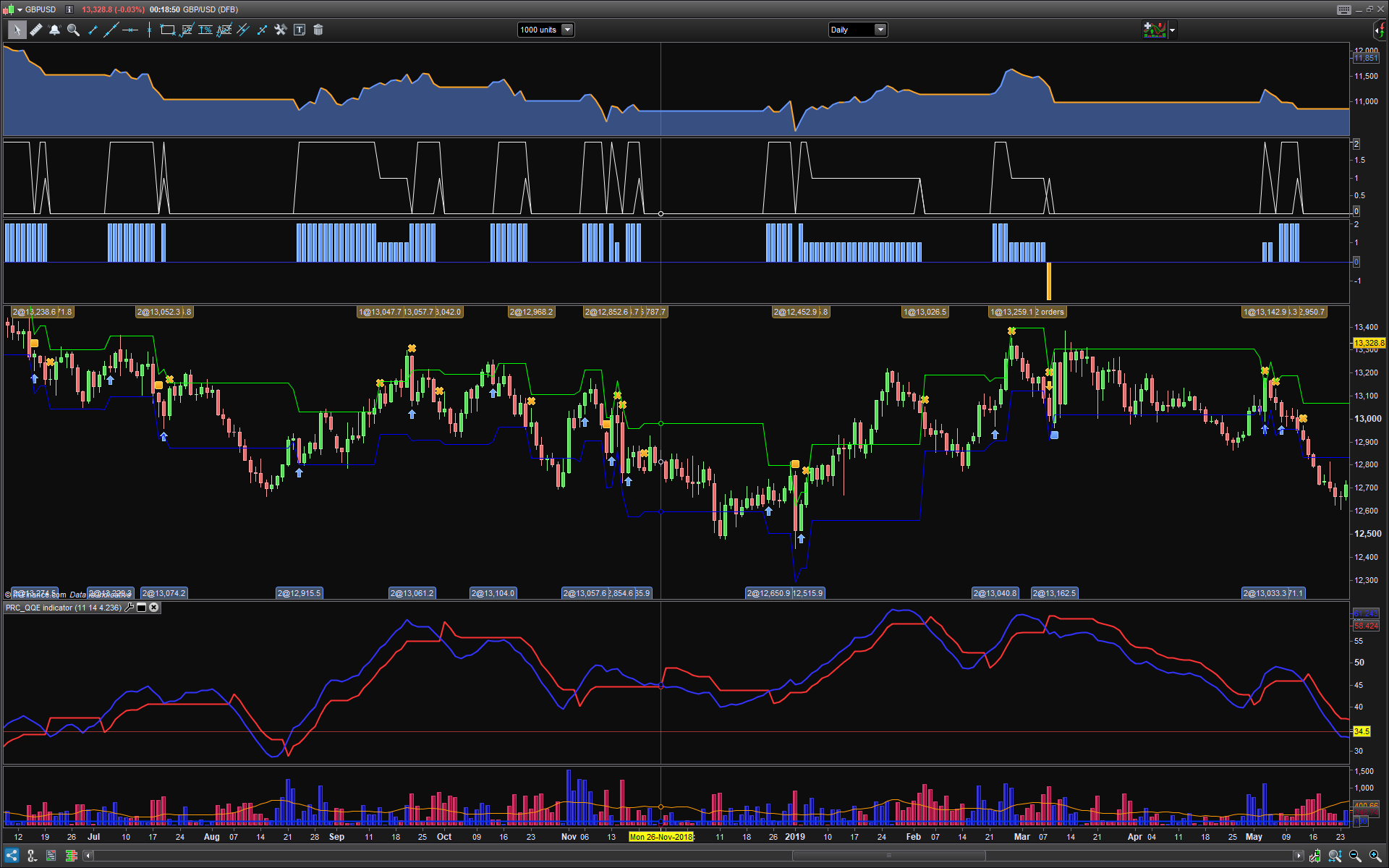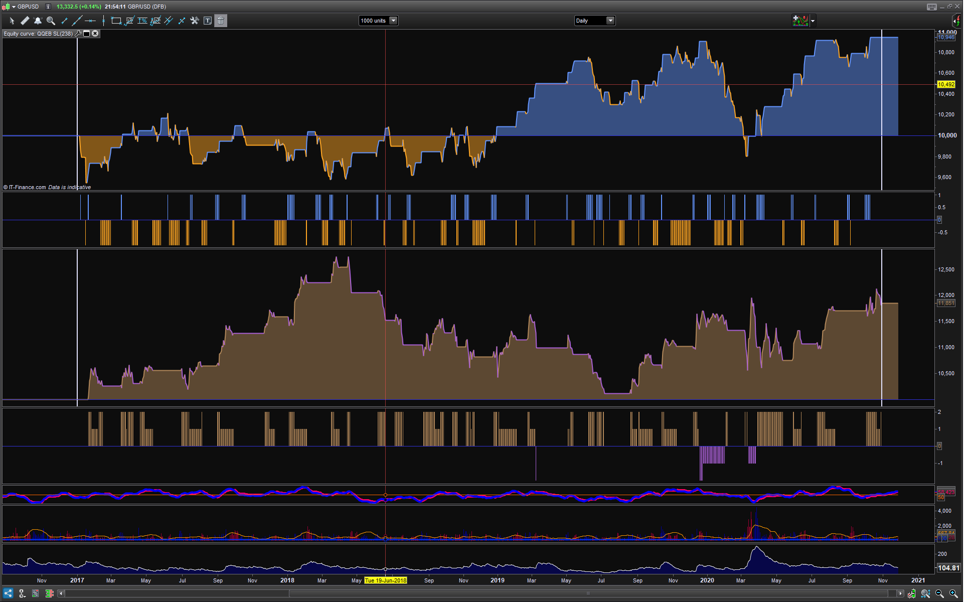 Definitely should be some shorts there you can see an August at the beginning of the chart there’s a crossover and it not on market yet no short and in September there’s a long where they shouldn’t be it goes long yet the qqe has not crossed over i’m going to test a different indicator “what if it’s the indicator”