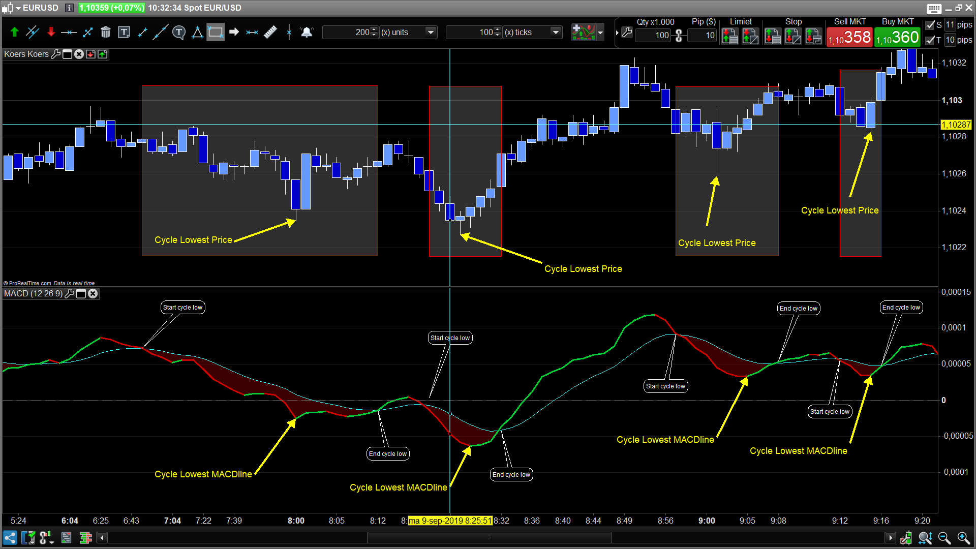 //lowest macd and price in cycle