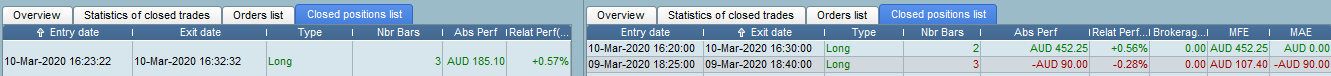I have run a auto system, the backtest (right side) is 2 bar, but actual run is 3 bar. and the profit is much difference!