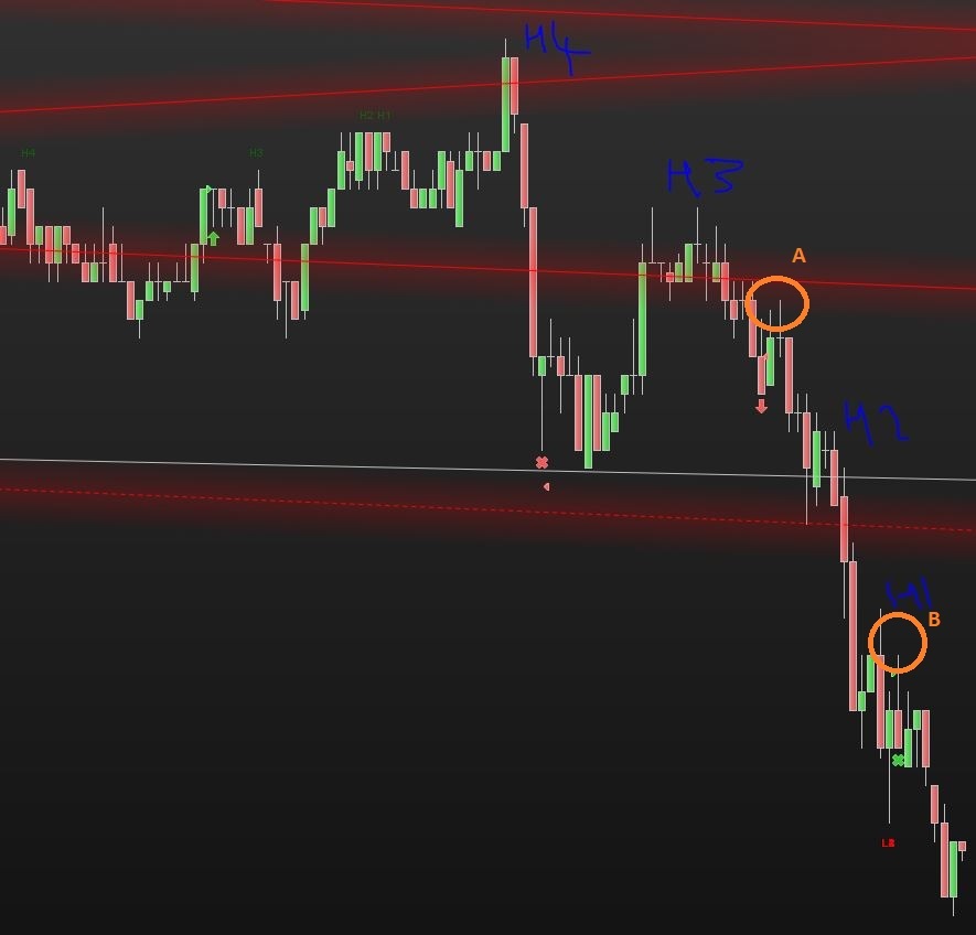 With reference to your question – I need to know why point B is tagged as H1, while point A is not tagged. My thinking was that Point B has broken the previous low where the red X is on the chart. To be honest I dont want to be ambiguous in my requirements to you and want to make clear that I am new to this and stiff figuring out the requirements. I apologise for any confusion and will be much clearer going forward.