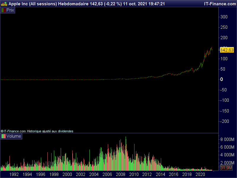 On my demo account, weekly chart of AAPL go back in the 90’s!