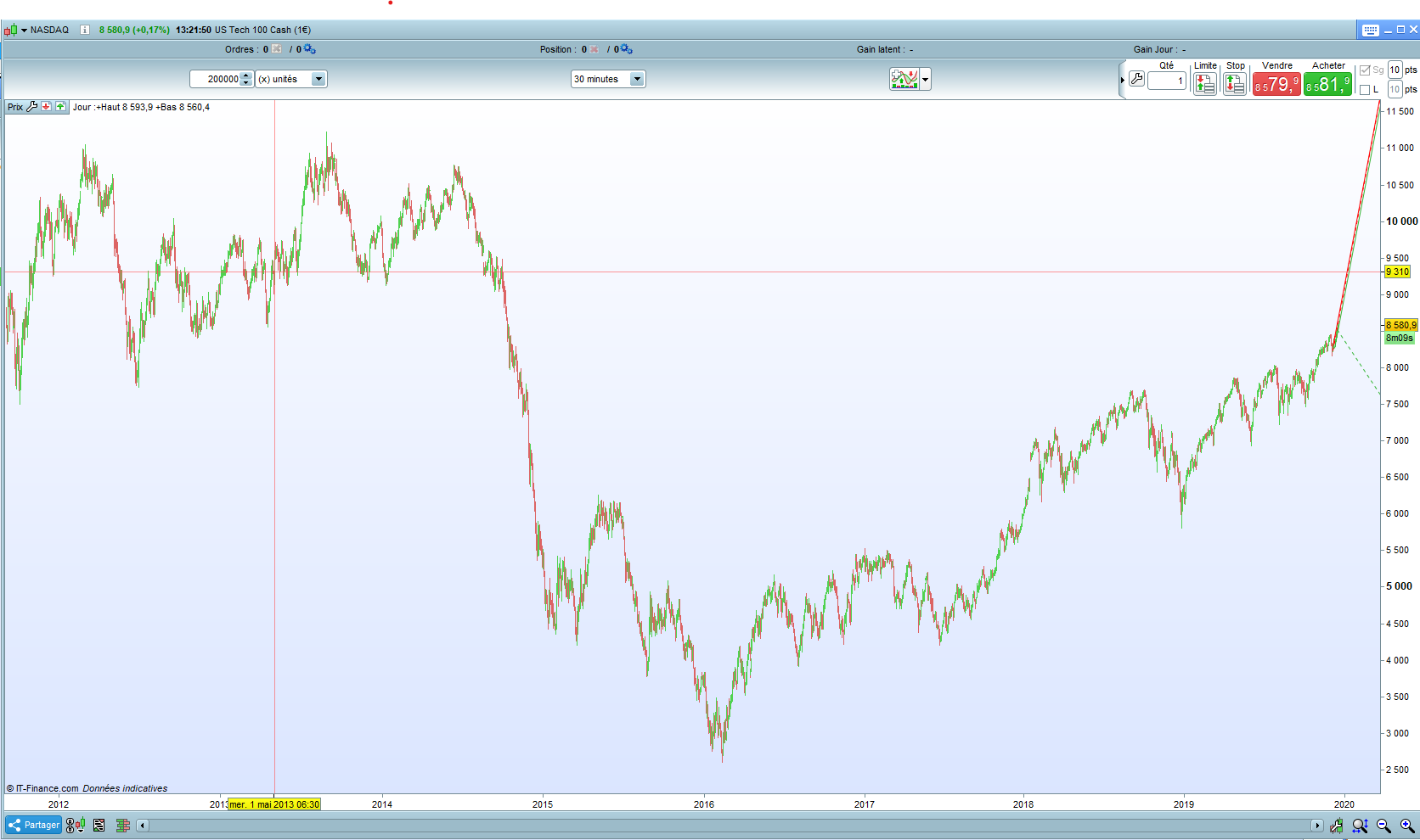 Je vous signale un souci d’historique. Voici en PJ ce que j’ai en 15 et 30 min sur l’US Tech, ce qui ne correspond pas à la réalité, ou j’ai raté un épisode…