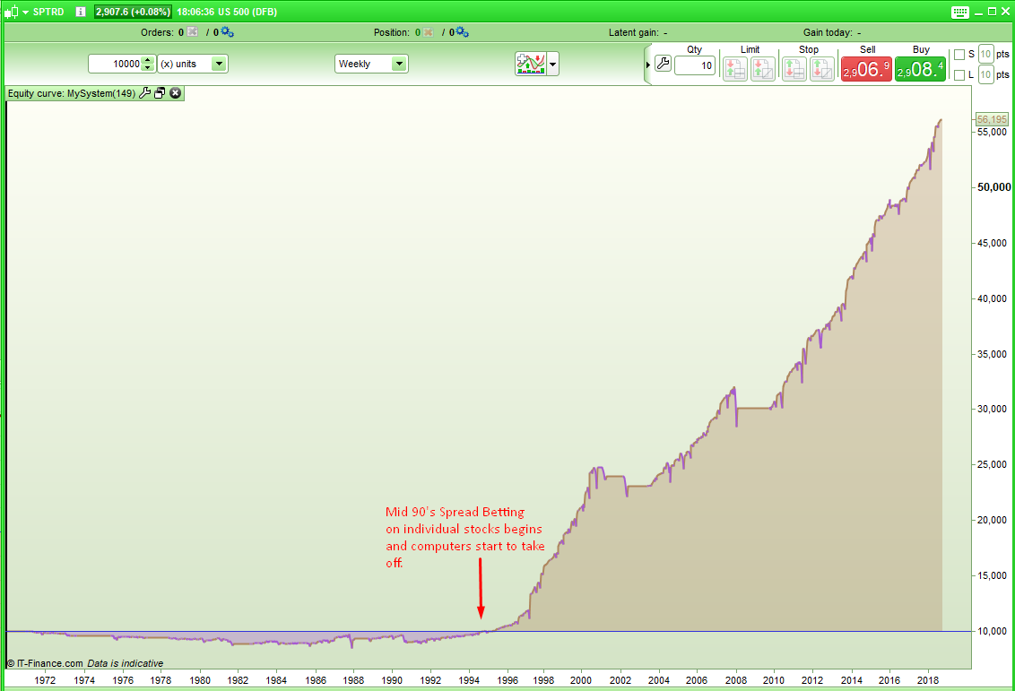 Not much point in testing on any data before spread betting and computers hit the markets!