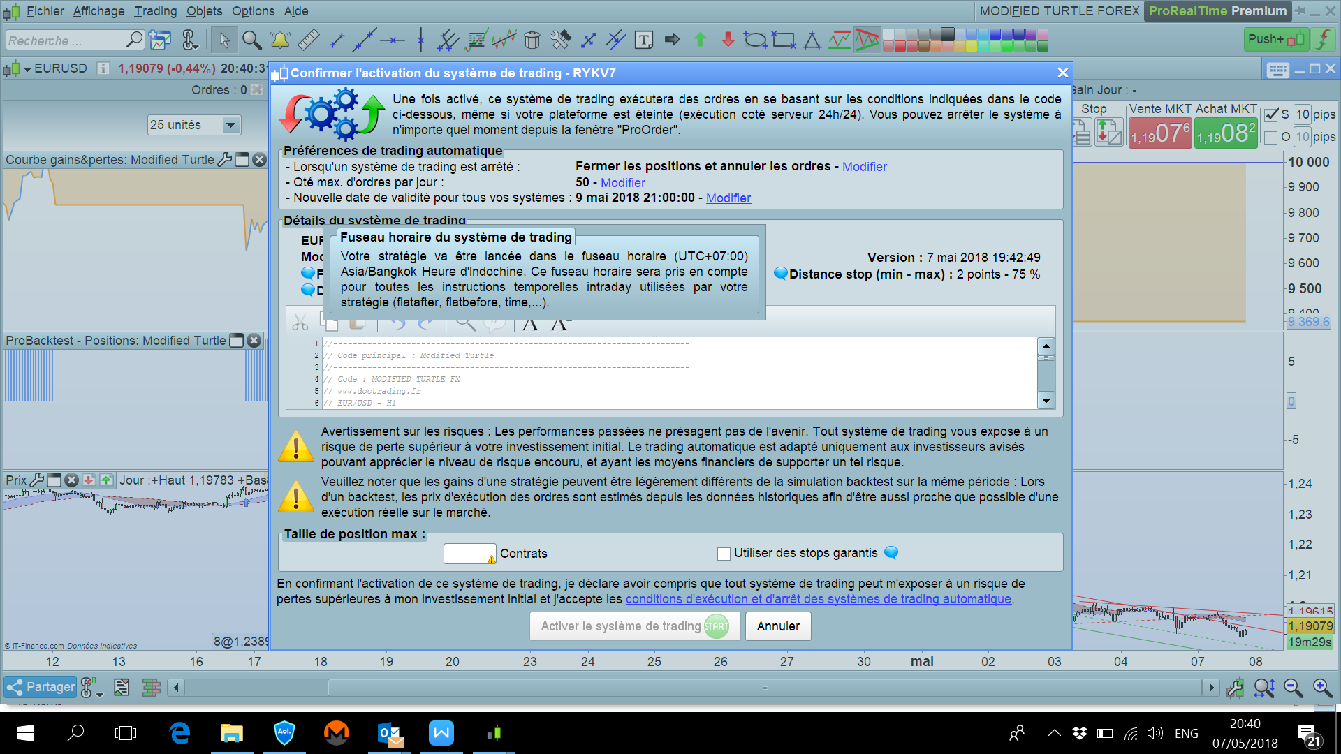 J’ai fait le test avec 040000…la strategie ne fonctionne plus..pas de resultat….aucun trade…ca marche bien jusqu’a 24h00…comment faire pour refleter ces horaires France  dans ma tranche horaire ? Les gens de Prorealtime ne repondent que tres rarement aux emails..donc je ne sais pas