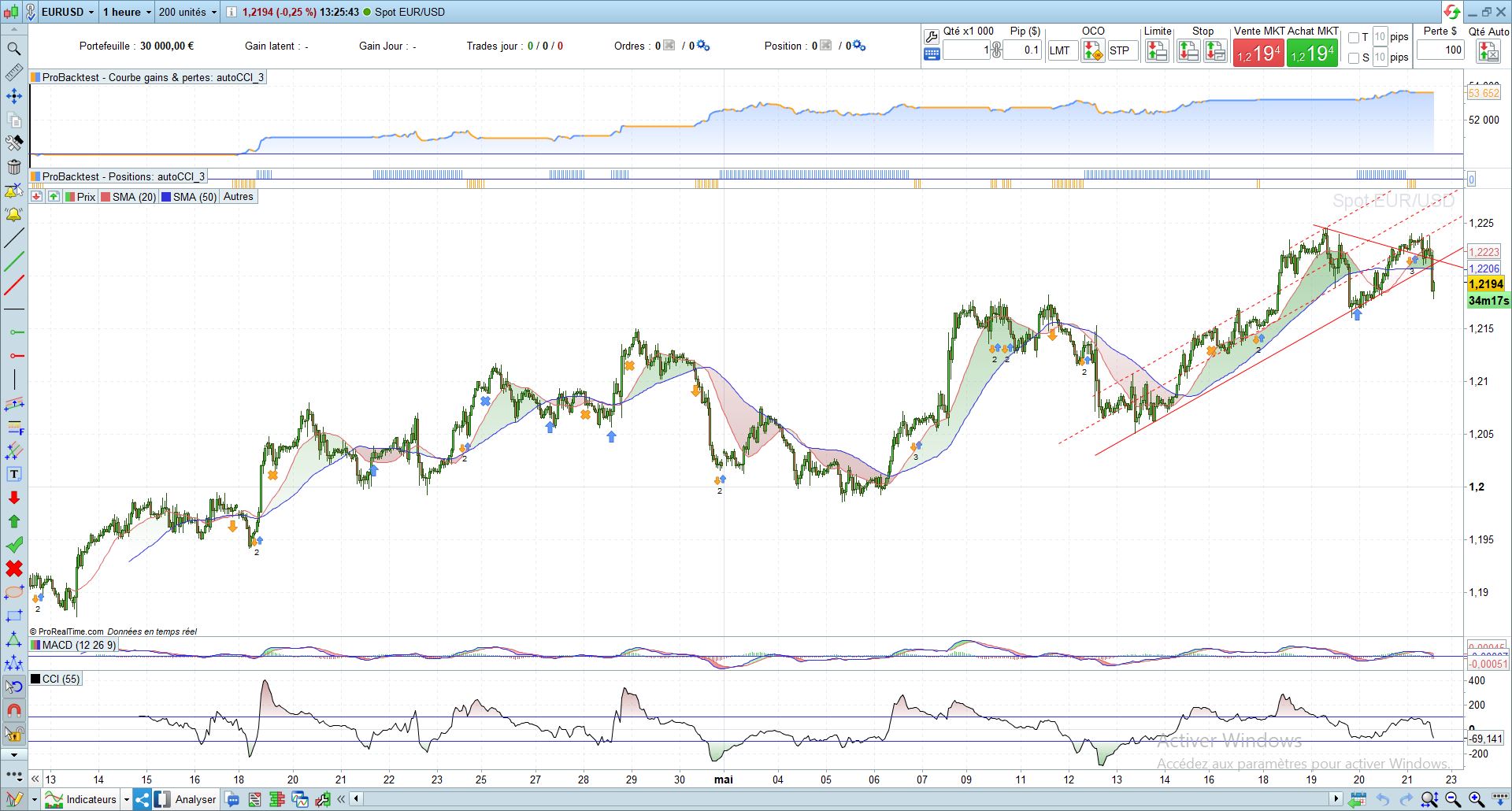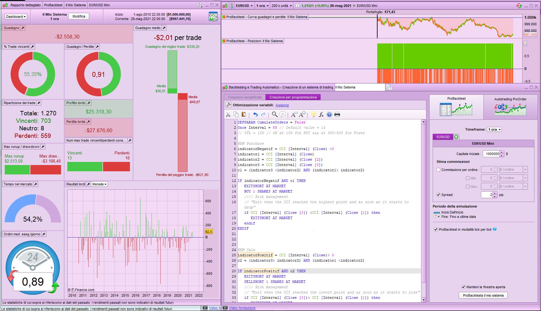 – When the (array of) CCI reaches the highest value ==> Then sell (SELLSHORT)