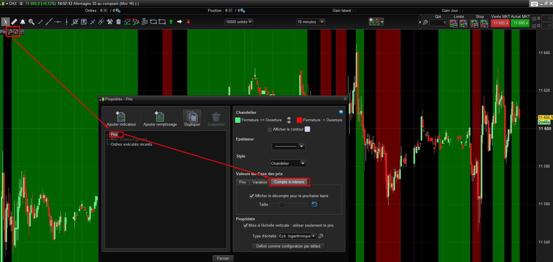 On PRT 10.2 it was easy to enable the count down timer, normally shown on the right had side of the chart.