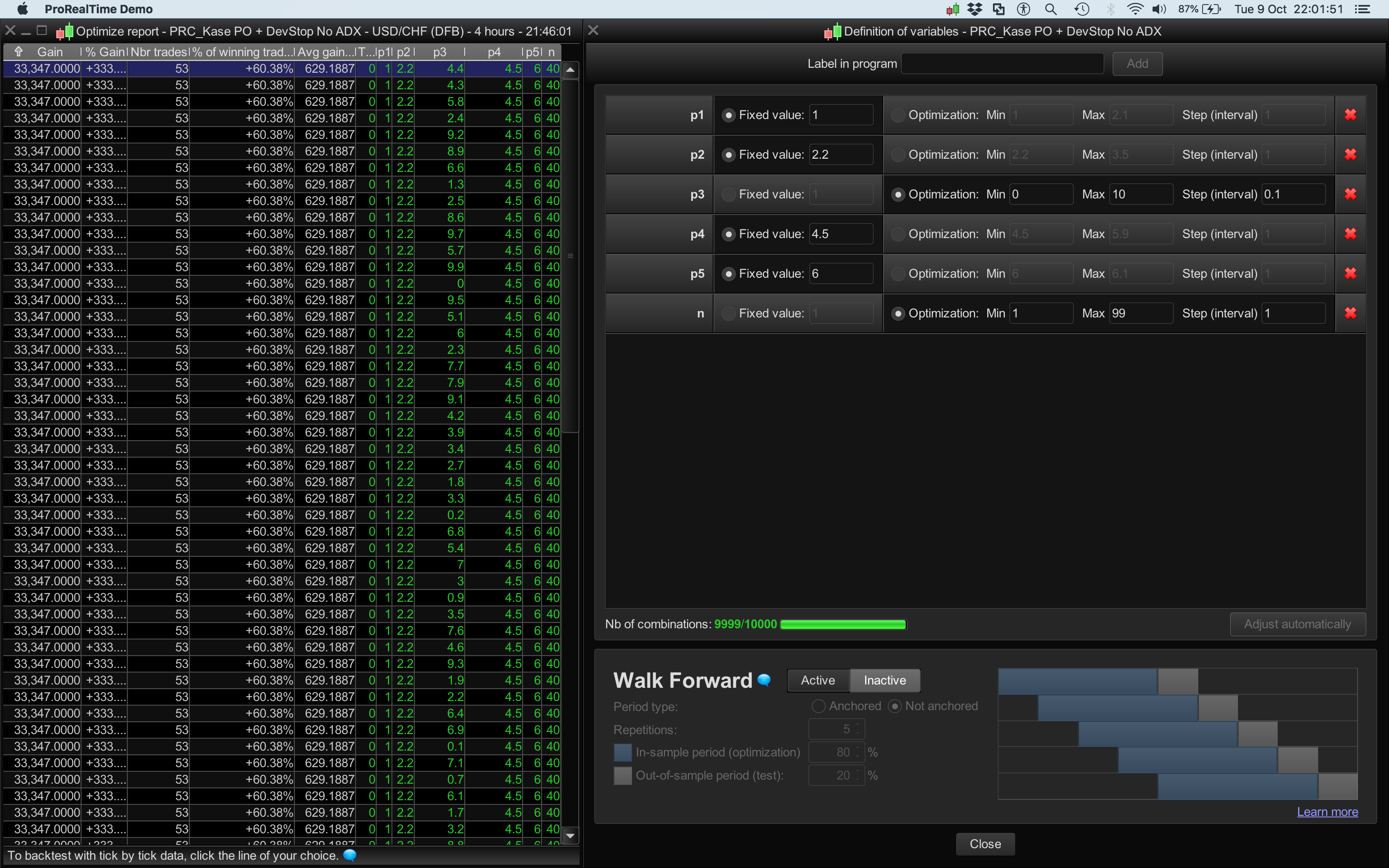 3. since you are only using the dev2 line to exit orders, it is not necessary to optimize all other settings than p2, that’s why you had a lot of strategy showing the same results with different settings of p1;p3:p4:p5