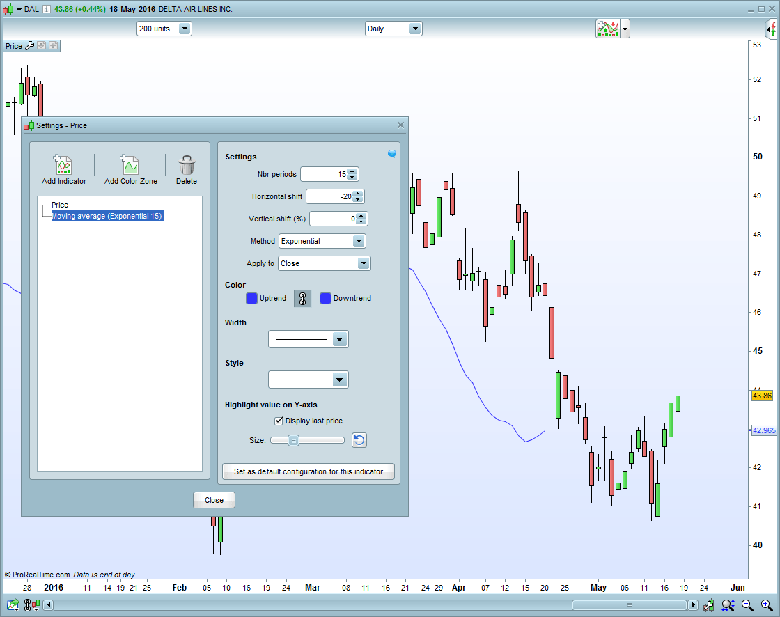 Thats good to know but its not what I’m trying to do. I want the indicator that I program to be shifted to the left relative to the price. If you look at my example the moving average is shifted to the left by 20 bars.
