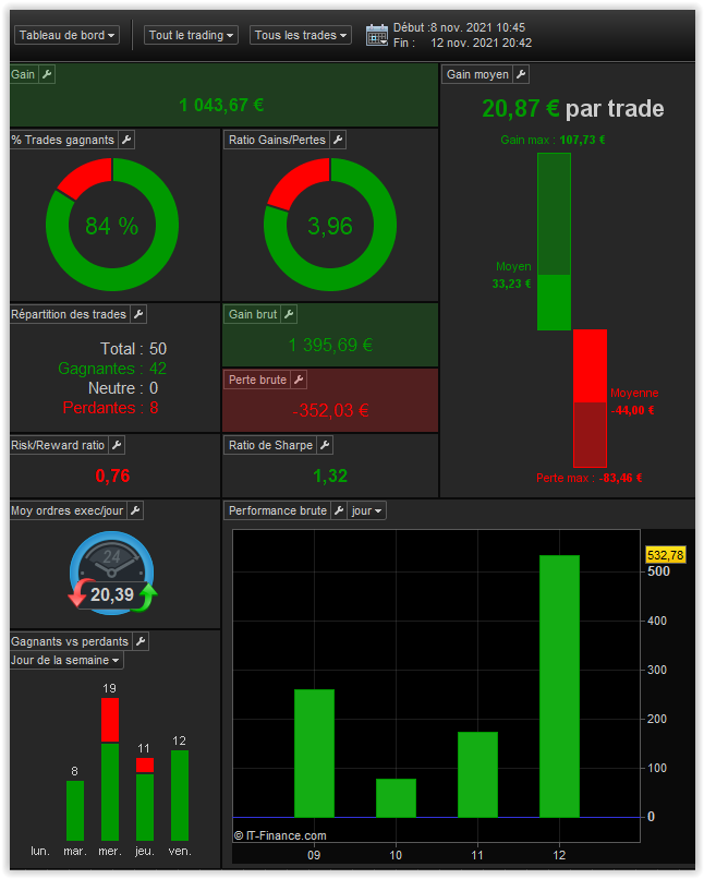Big risks (risk/reward ratio : 0.25) but it works since the beginning of the live in July