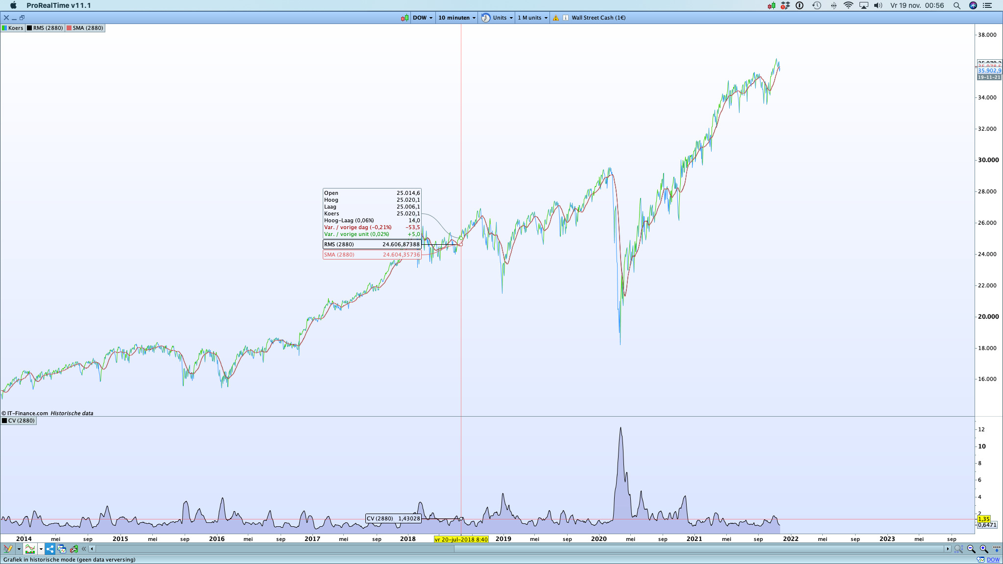 The CV value (noise) of the Dow Jones (screenshot) is on average <u>between 1 – 2%.</u>