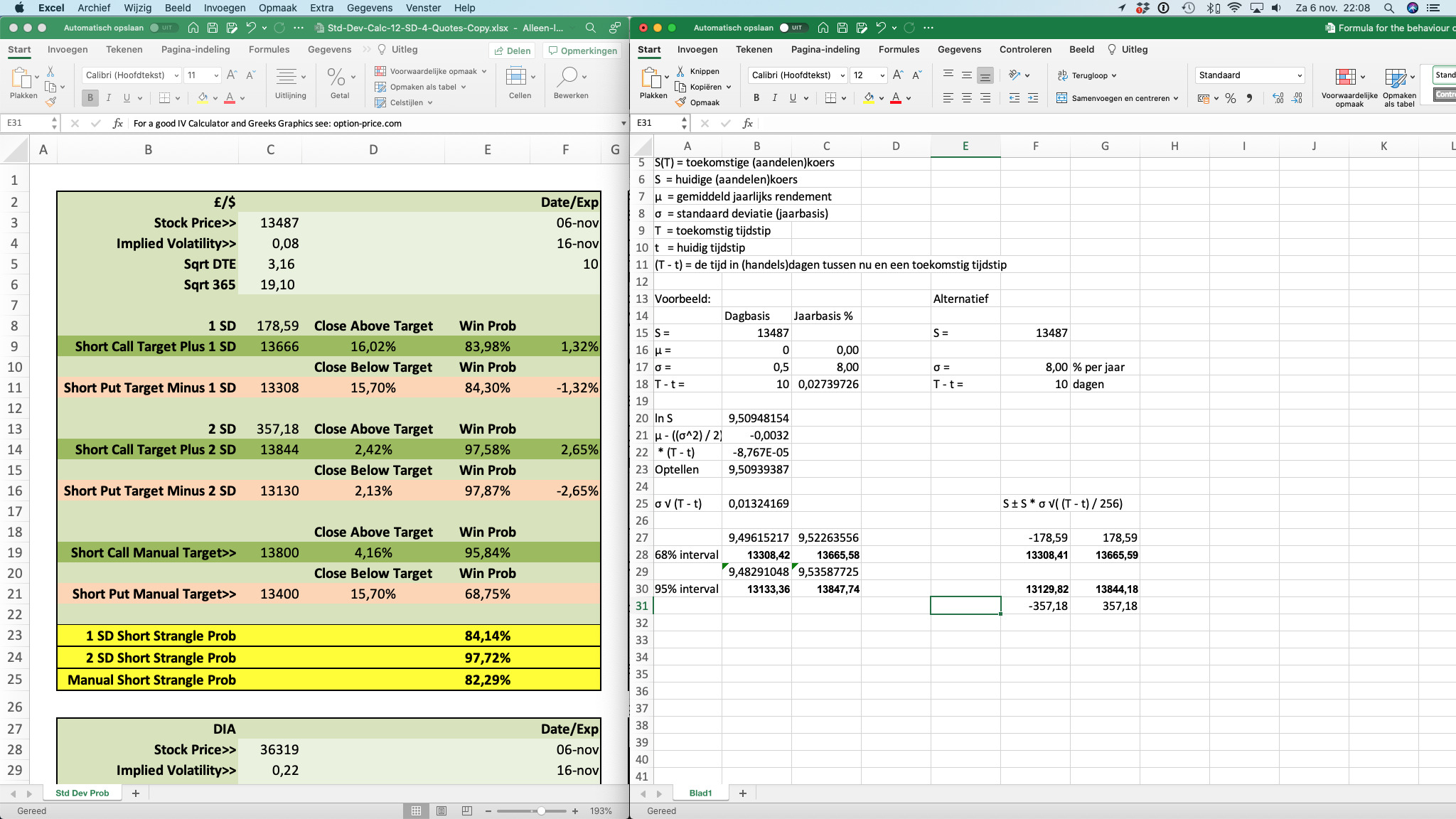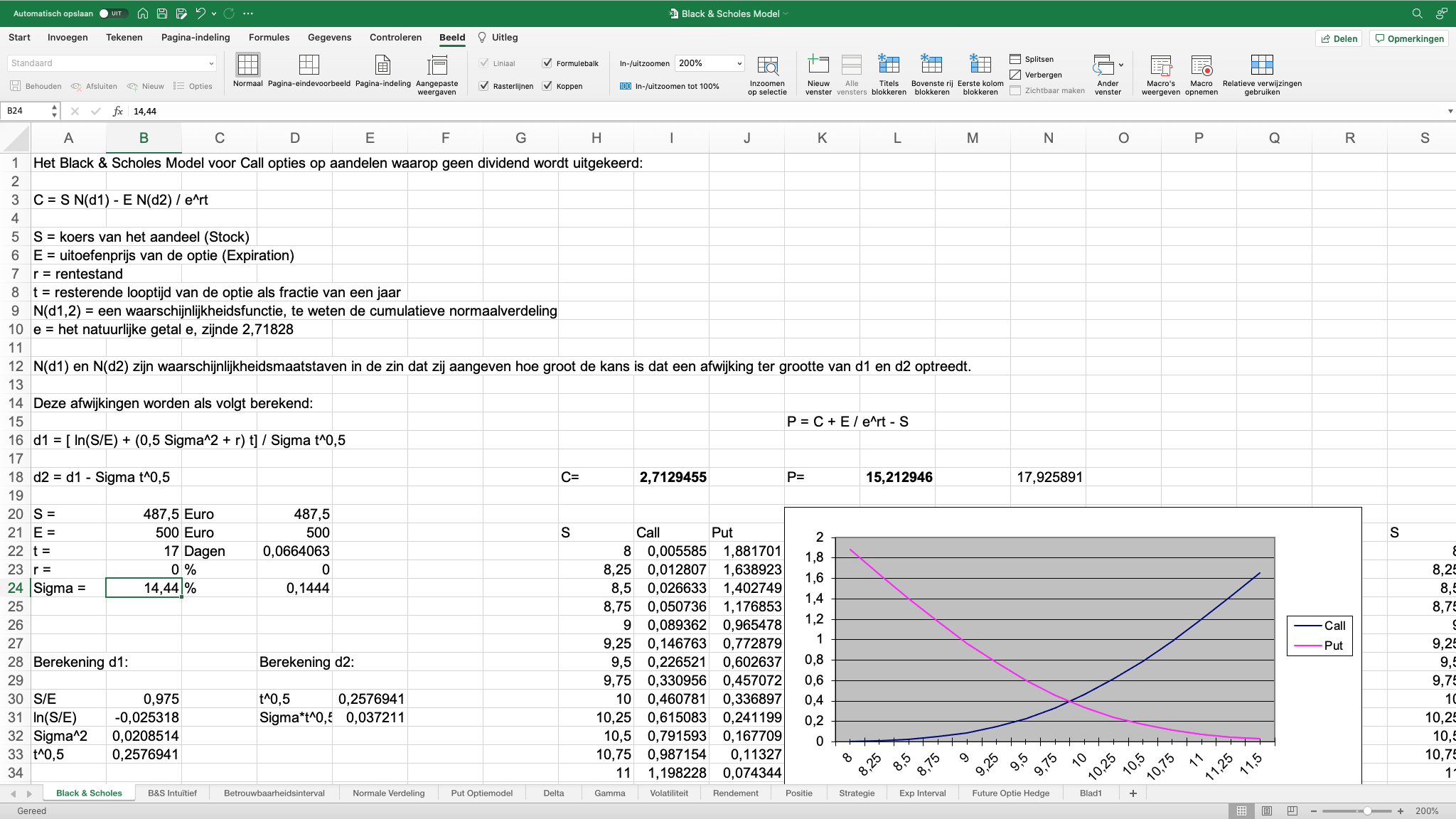 Re: Dagbasis and Jaarbasis (B17 & B18) “freezing,” I think the “trick” is to calculate the daily σ, (SD) first in Excel and just let it naturally populate the yearly field. 🙂