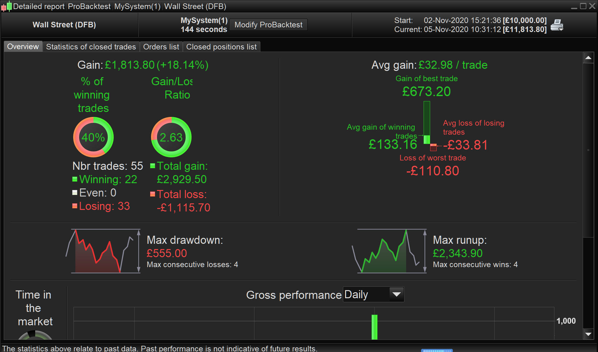 Shame that, even though 144 secs is longer than 2mins, a 200k backtest is only 5 days as opposed to 13 months. Another weird quirk of PRT .