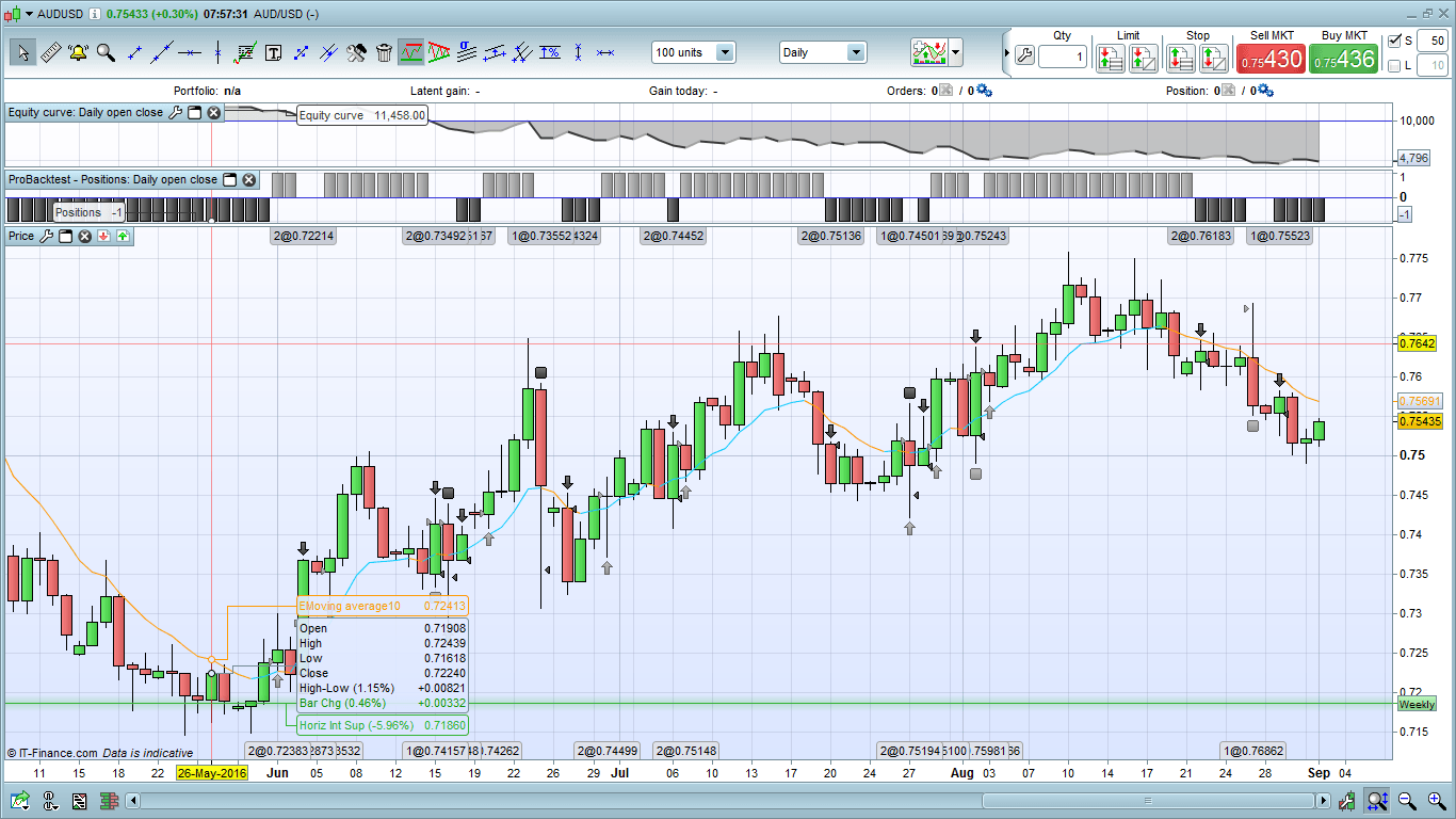I am looking to test on Australia 200 & AUD/USD on daily candles timeframes, which would include after hours trading to pick up any moves during the europe & US sessions. I’ll adjust the times to 000100 to enter and 115900 to exit – I’ll do some testing & see how it goes.