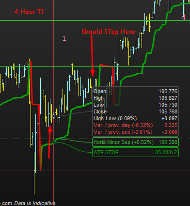 I tried this indicator to trail stop. Problem i am facing is that, when there is a trend change, say from bullish to bearish. For example, In a short entry – I get stopped out when price moves back and touches the support line of Bullish Trend. While the purpose of stop is to sell when the BEARISH upper line is crossed (when short in market), positions get stopped out at start of the trend. I think this is unintended consequence. I tried similar another indicator, same thing happens. How would be possible to BUY only when RED line above is crossed in Short Entry and Bottom Green line when Long?