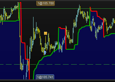 Now, the code put pending STOP Orders on the indicator line, but only if it is green when you are long on market and if it is red when you are short on market.