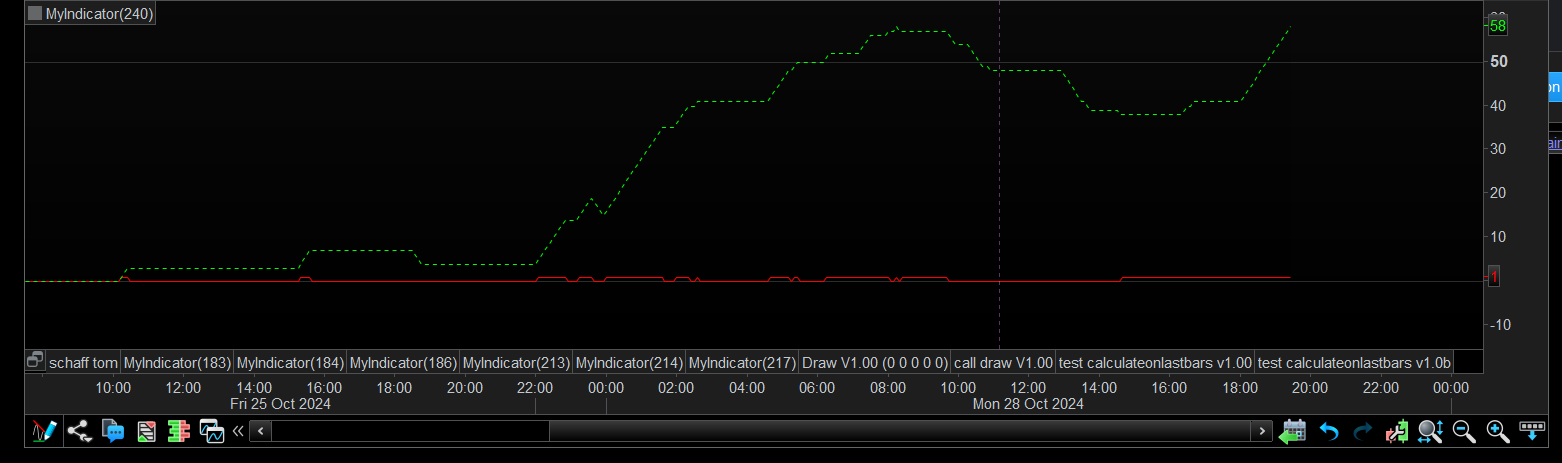 Im Bild ist die grüne 58 der summierte Wert von “1” aus den letzten 100 Balken.