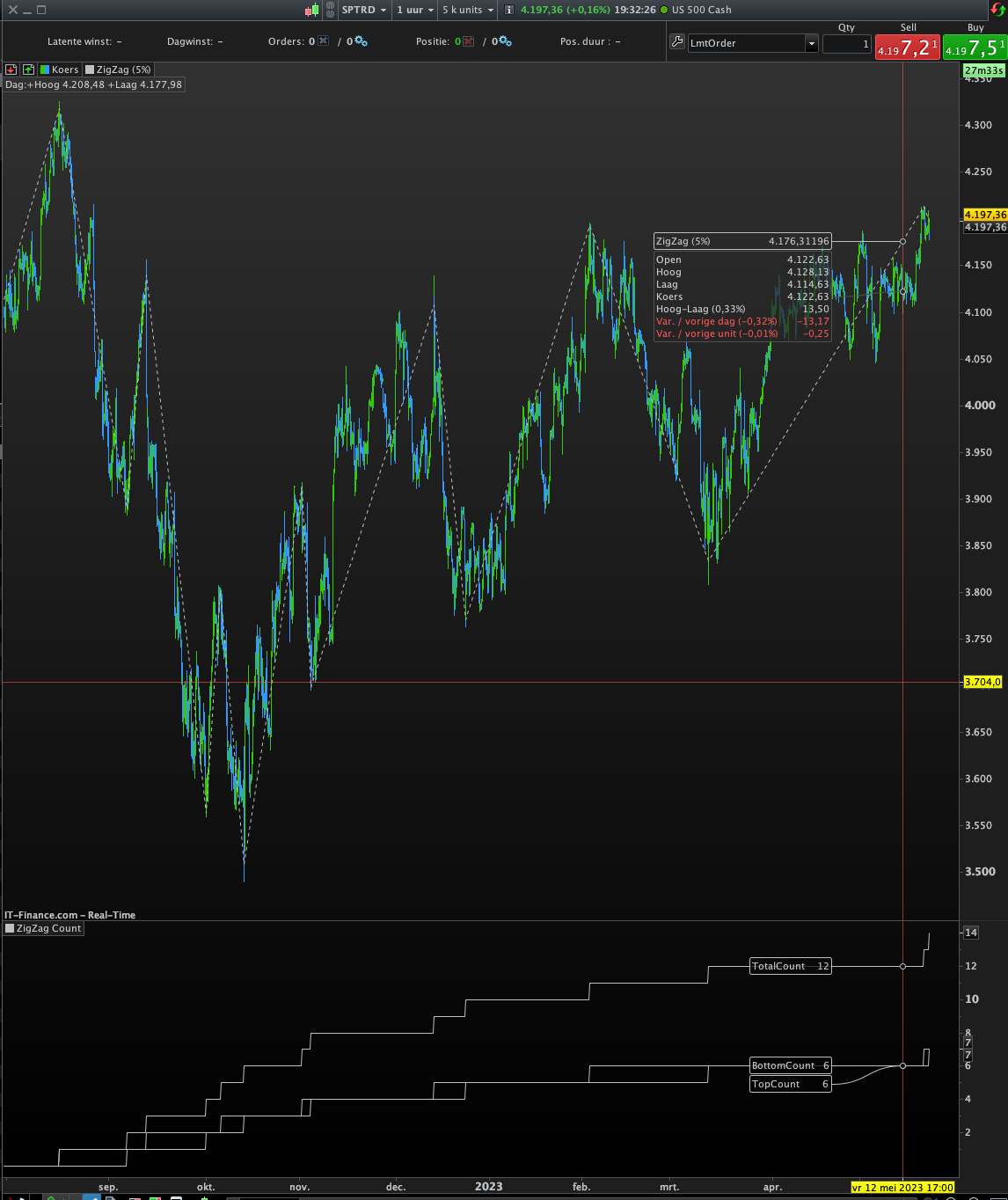 I would like to count the quantity of zigzag moves of an index/security of a chart