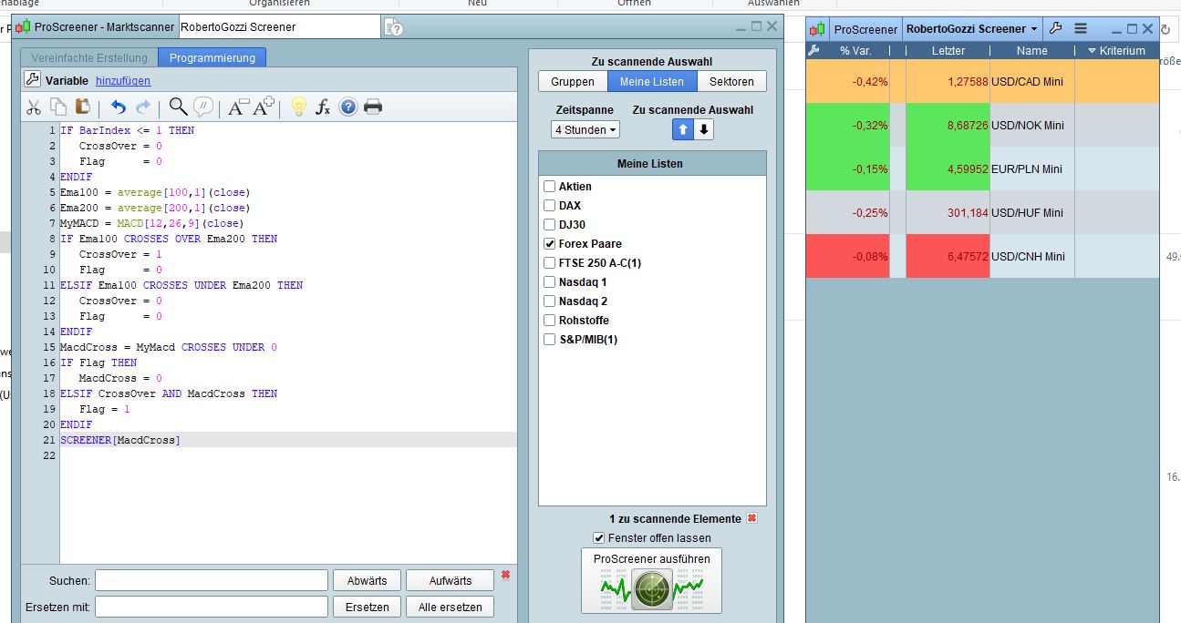 PS: The screener may be SCREENER[CrossOver and MacdCross and Flag=1]