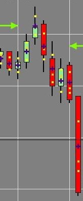 One dot in the middle of each candle will be enough. multiple dots per candle are not necessary.