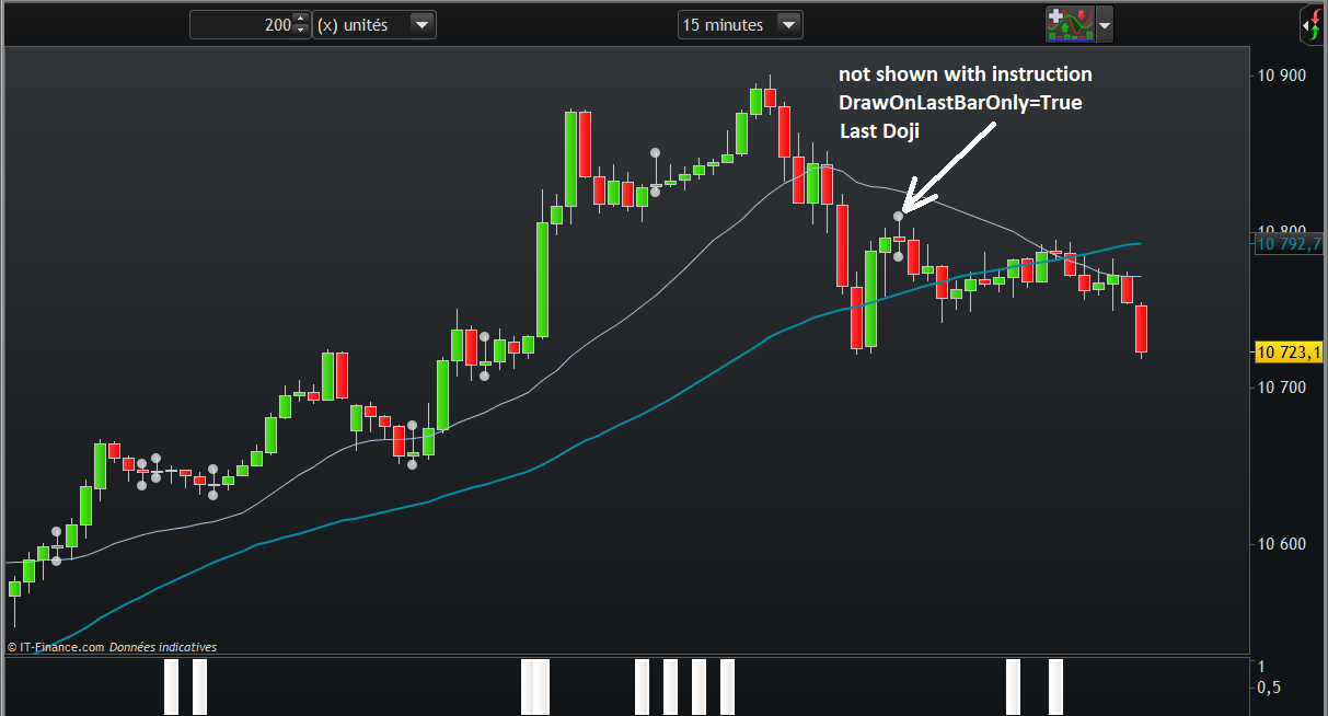 Yes, it’s because it only draws what is drawn on the last bar. Since DOJI occurred several bars before, it will not draw anything.